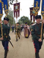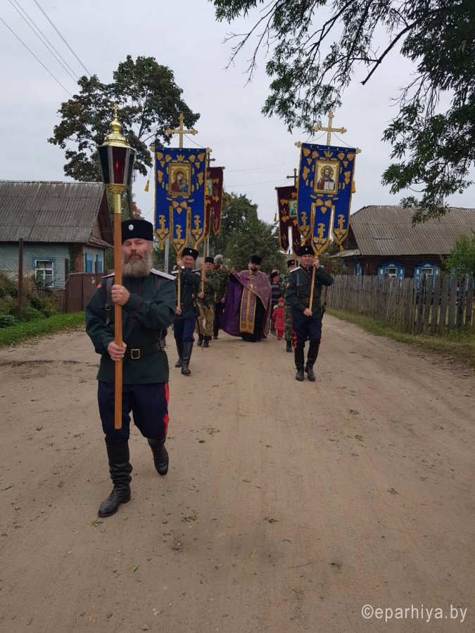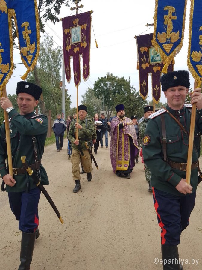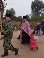 30 сентября 2017г., в д.Петровичи Светлогорского района состоялась встреча земляков, на которую был приглашен клирик храма Преображения Господня г.Светлогорска, настоятель храма святителя Николая Японского аг.Дуброва иерей Евгений Новик. К встрече представители Светлогорского отделения казаков установили поклонный крест и после его освящения приглашенные односельчане, живущие в разных уголках Беларуси, а также жители близлежащих деревень прошли крестным ходом по родной деревне. Иерей Евгений Новик поздравил всех присутствующих со знаменательным событием, пожелал никогда не забывать свою малую родину, подарил иконки на молитвенную память. В завершение мероприятия для всех земляков с концертной программой выступили местные жители, а затем в теплой дружеской обстановке состоялась общая трапеза. |