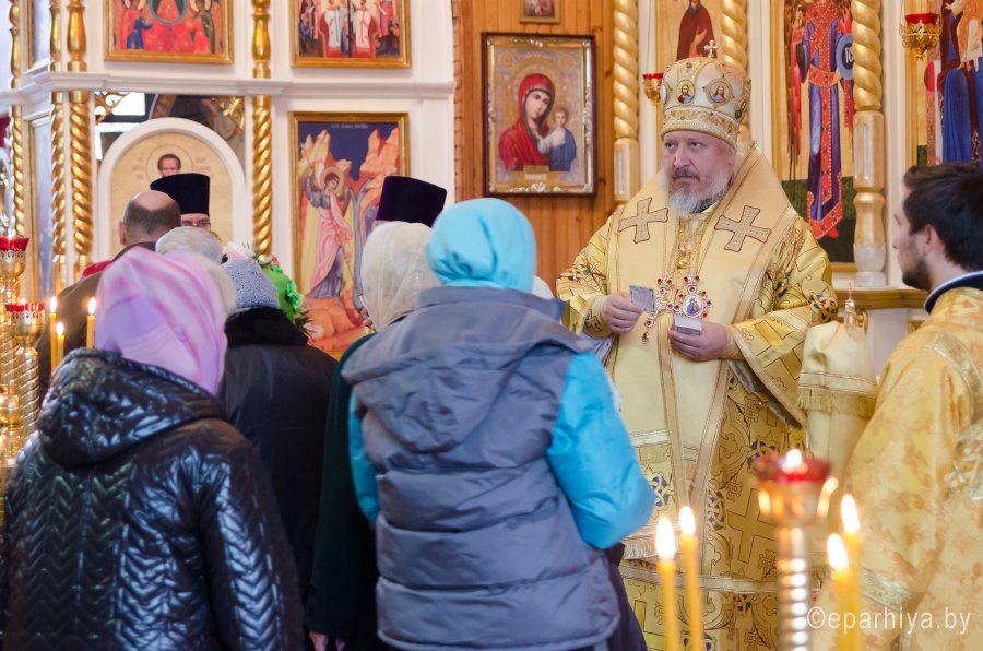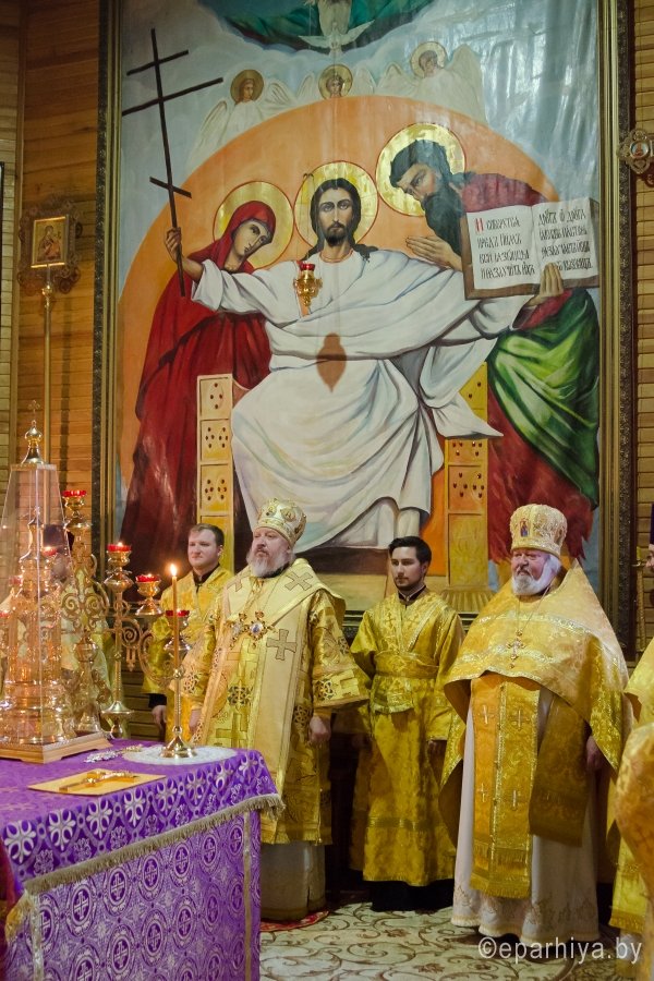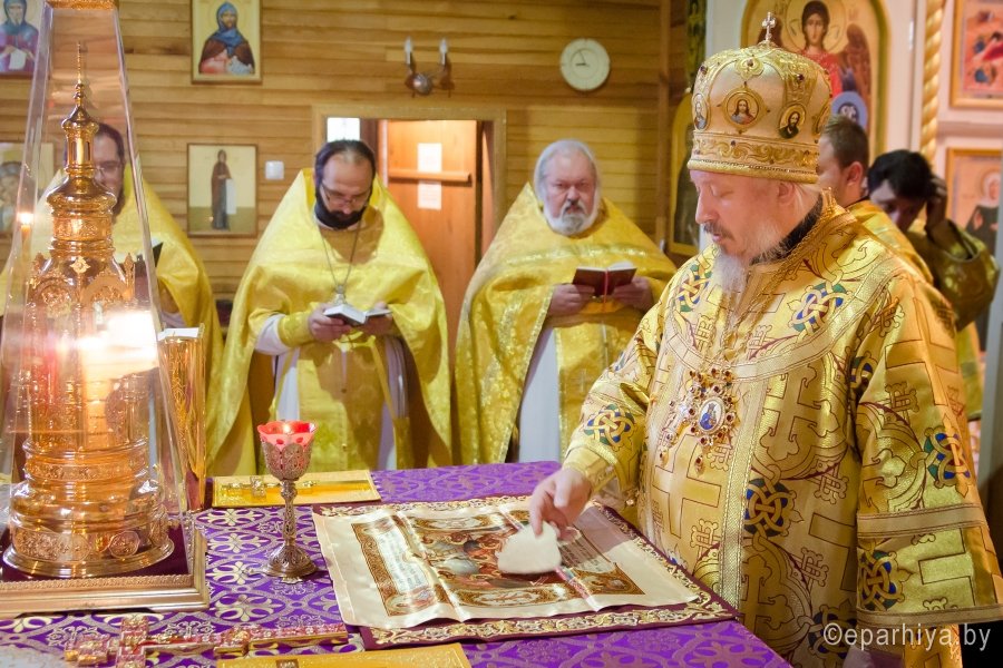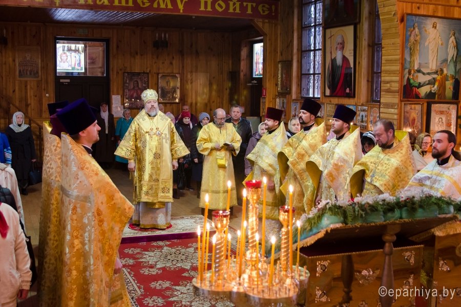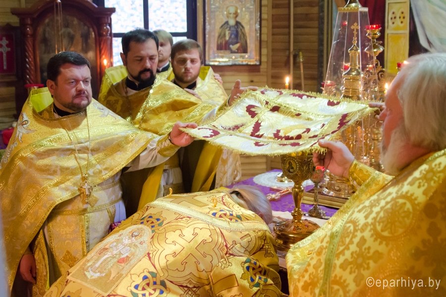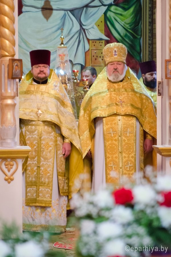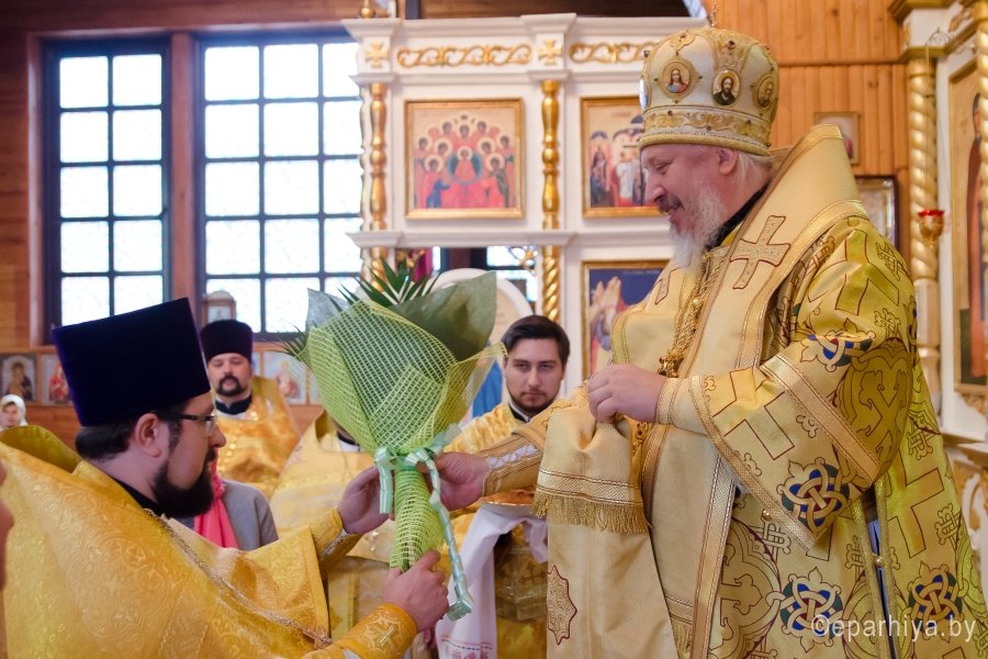2 октября 2017г., в день памяти блгв. вел. кн. Игоря Черниговского и Киевского, Преосвященный Стефан совершил Божественную литургию в храме Архистратига Михаила г. Гомеля. Преосвященному сослужили: Председатель отдела архитектуры и строительства Гомельской епархии протоиерей Георгий Тур, Председатель Информационного отдела Гомельской епархии протоиерей Олег Кострома, благочинный Гомельского городского округа протоиерей Игорь Ольшанов, благочинный Гомельского районного округа протоиерей Артемий Кривицкий, ключарь Свято-Петро-Павловского кафедрального собора г. Гомеля иерей Алексей Сергеев и духовенство епархии. По запричастном стихе со словами проповеди к молящимся обратился клирик Свято-Петро-Павловского кафедрального собора г. Гомеля протоиерей Александр Лопушанский. По окончании богослужения Владыка поздравил с Днем Ангела настоятеля храма Архистратига Михаила в г. Гомеле, Председателя отдела по работе с Вооруженными Силами и правоохранительными органами, благочинного Гомельского городского округа протоиерея Игоря Ольшанова и преподнес в дар цветы, святую просфору и икону Божией Матери "Остробрамская". |