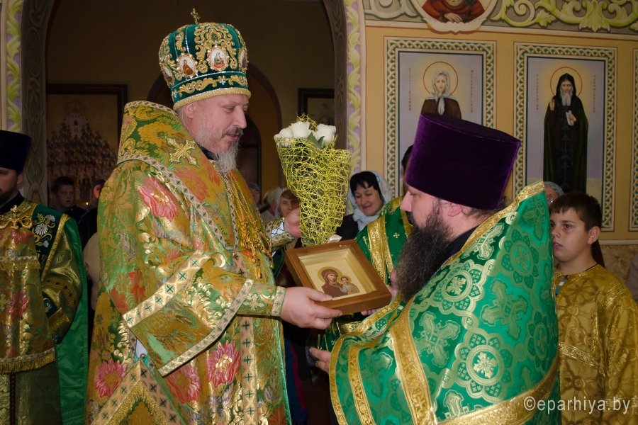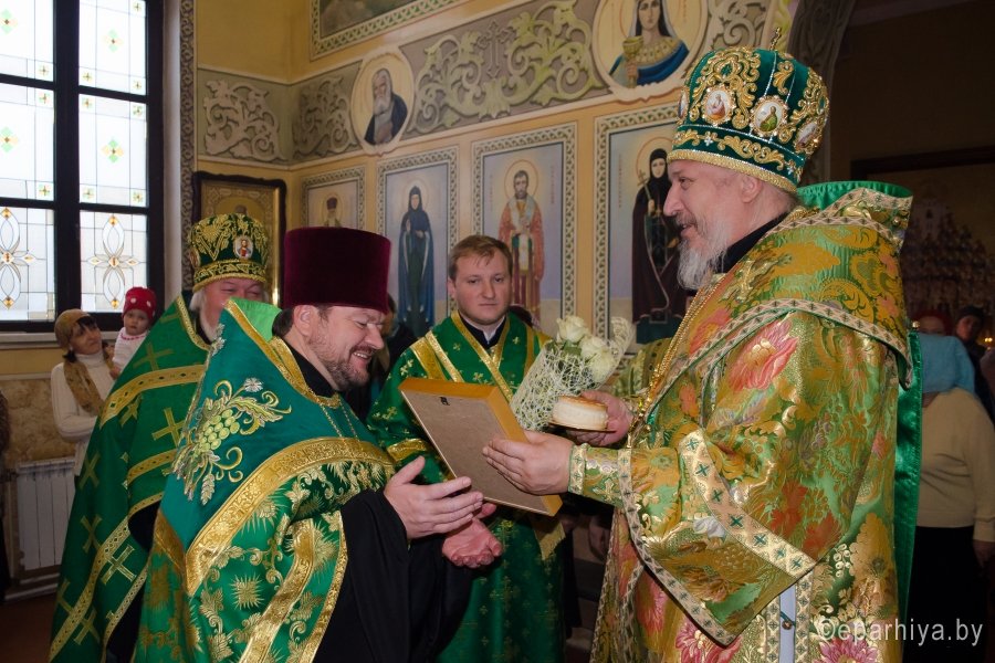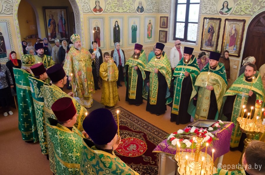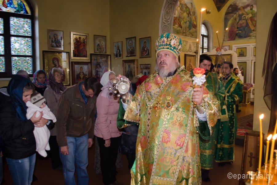 2 октября 2017г, в канун дня памяти св.блг.кн.Олега Брянского, Преосвященный Стефан совершил всенощное бдение в Спасо-Преображенском храме г.Гомеля. Преосвященному сослужили: Председатель Отдела архитектуры и строительства Гомельской епархии протоиерей Георгий Тур, Председатель Информационного отдела Гомельской епархии протоиерей Олег Кострома, благочинный Гомельского городского округа протоиерей Игорь Ольшанов, благочинный Гомельского районного округа протоиерей Артемий Кривицкий, ключарь Свято-Петро-Павловского кафедрального собора г. Гомеля иерей Алексей Сергеев и духовенство епархии. За богослужением Владыка обратился со словами Архипастырского назидания к верующим и поздравил настоятеля прихода, Председателя Информационного отдела Гомельской епархии протоиерея Олега Кострому с Днем Тезоименитства. Так же епископ Гомельския и Жлобинский Стефан напомнил всем и о том, что Святая Церковь в этот день чтит память св.блг.кн.Игоря Черниговского. По случаю праздника Преосвященный поздравил настоятеля Свято-Никольского храма г.Гомеля (ст.Волотова) протоиерея Игоря Жабняка с Днем Ангела. Владыка преподнес в подарок отцам цветы и Святой Образ. Перед началом богослужения Владыка в сопровождении Председателя Отдела архитектуры и строительства Гомельской епархии протоиерея Георгия Тура ознакомился с ходом строительных работ на Приходе. |