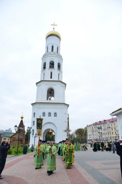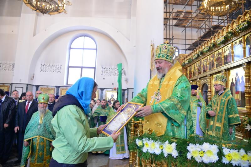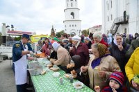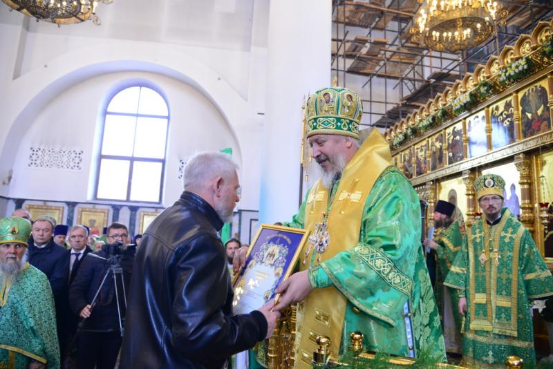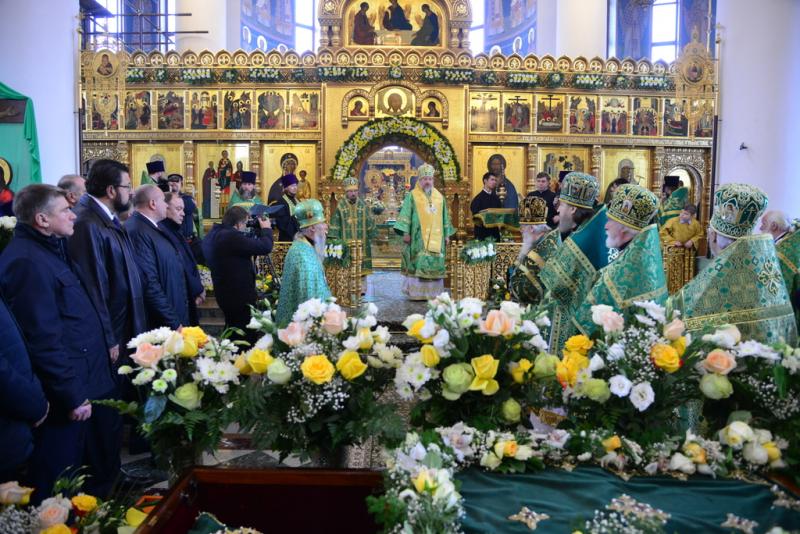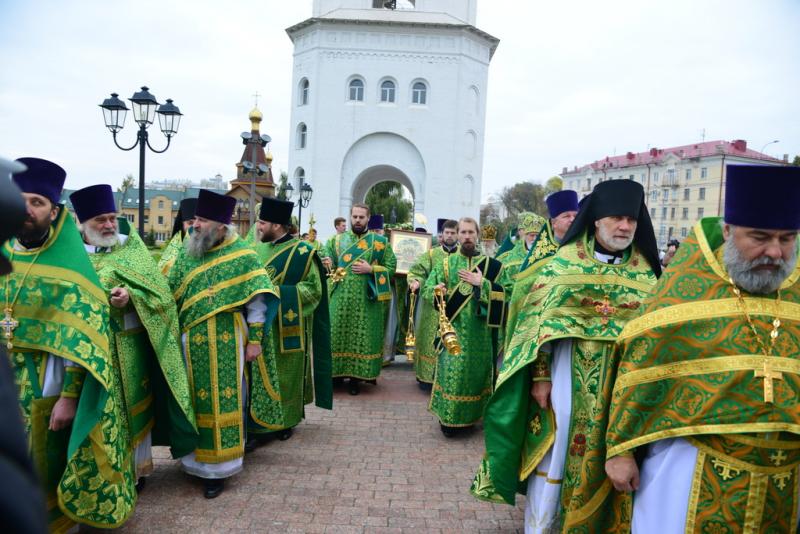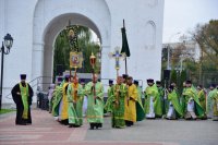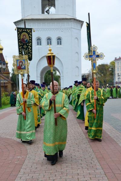 3 октября 2017г., по благословению Высокопреосвященного Павла, митрополита Минского и Заславского, Патриаршего Экзарха всея Беларуси, Преосвященный Стефан и Преосвященный Вениамин приняли участие в торжествах, посвященных дню памяти св.блг.кн. Олега Брянского и Собора Брянских Святых в Брянской митрополии. Божественную литургию в Свято-Троицком Кафедральном Соборе города Брянска, по благословению Митрополита Брянского и Севского Александра, возглавил Епископ Гомельский и Жлобинский Стефан в сослужении Епископа Борисовского и Марьиногорского Вениамина (Белорусский экзархат), духовенства Брянской и Клинцовской епархий, а также настоятеля Никольского морского собора г. Кронштадта архимандрита Алексия (Ганьжина) и клирика собора, заместителя председателя отдела по взаимодействию с вооруженными силами и правоохранительными учреждениями Санкт-Петербургской епархии иеромонаха Леонида (Манькова). Песнопения исполнил хор Кафедрального Собора (регент – А.А. Бирюков). За Литургией среди прихожан молились настоятельница Свято-Успенского монастыря г. Клинцы игумения Зосима (Полковник), настоятельница Брянского Петро-Павловского монастыря игумения Елена (Бахарева), настоятельница Карачевского Николо-Одрина монастыря игумения Серафима (Якимчук) с сестрами. На торжестве присутствовали заместитель председателя Брянской областной Думы А.П. Бугаев, заместители Губернатора Брянской области, депутат Брянской областной Думы Н.С. Валуев, федеральный инспектор по Брянской области М. М. Калашников, руководители органов исполнительной власти и силовых структур региона. В центре храма для поклонения верующим в канун праздника была установлена рака со святыми мощами благоверного князя Олега Брянского, постоянно пребывающими в Свято-Троицком Кафедральном Соборе. На главный праздник Брянской митрополии в Свято-Троицкий Кафедральный Собор собралось множество духовенства и мирян. Более тысячи верующих – жители Брянска и области, паломники из других городов приехали почтить святых, в земле Брянской просиявших. Проповедь перед причастием произнес протоиерей Владимир Похожай, благочинный Новозыбковского церковного округа. За Литургией по благословению Митрополита Брянского и Севского Александра состоялась торжественная передача частицы мощей благоверного князя Олега Брянского в Ставропигиальный Никольский Морской собор города Кронштадта. Брянской епархией святыня передается в дар по просьбе Митрополита Санкт-Петербургского и Ладожского Варсонофия. Официальную делегацию от Санкт-Петербургской митрополии в Брянск возглавил настоятель Кронштадтского собора архимандрит Алексий (Ганьжин). В состав делегации вошли представители администрации города Кронштадта и Дома национальностей Санкт-Петербурга. Также вместе с частицей мощей брянского святого в Кронштадт будет доставлена икона преподобного Олега Брянского, написанная накануне праздника и освященная на мощах святого. Частица мощей благоверного князя в специально изготовленном ковчеге и его святой образ будут постоянно находиться в Морском соборе. По окончании Литургии был совершен праздничный Крестный ход со святыми мощами преподобного Олега Брянского, которые обнесли вокруг Кафедрального Собора. По окончании Крестного хода Епископ Вениамин вознес молитву не