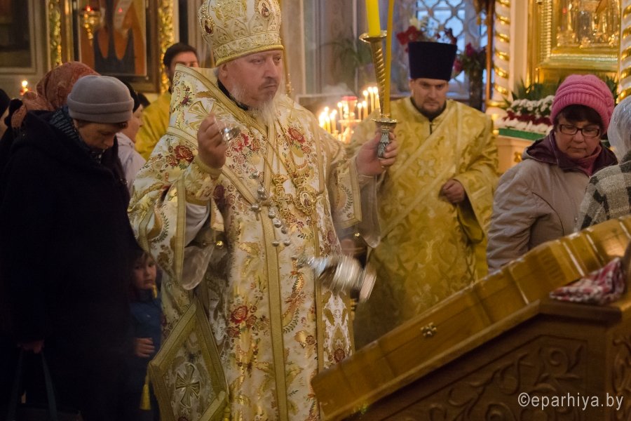 7 октября 2017г., в канун дня памяти прп. Сергия Радонежского, Преосвященный Стефан в сослужении духовенства собора совершил всенощное бдение в Свято-петро-Павловском кафедральном соборе г. Гомеля. По окончании богослужения Владыка обратился к молящимся со словами Архипастырского назидания. |