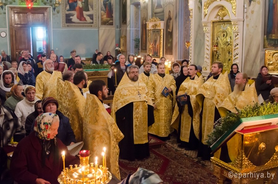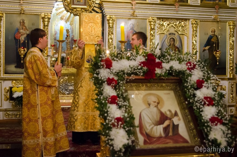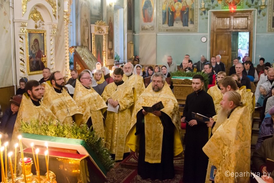 8 октября 2017г. в Свято-Петро-Павловском кафедральном соборе г. Гомеля было совершено вечернее богослужение с чтением акафиста нараспев. Богослужение возглавил настоятель храма прп. Серафима Саровского в г. Гомеле протоиерей Сергий Леоньков в сослужении духовенства собора. |