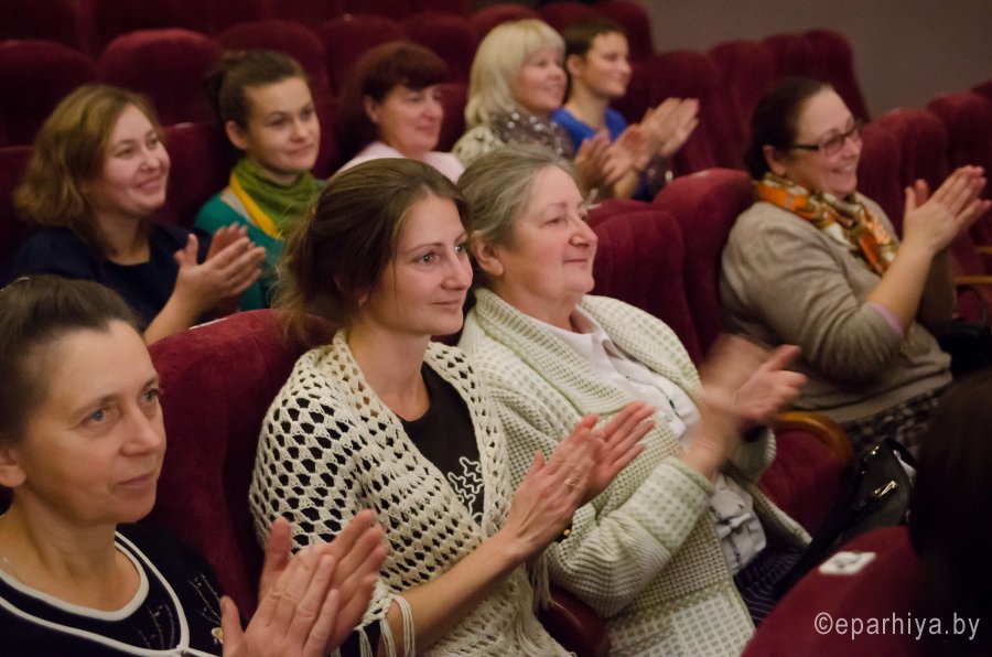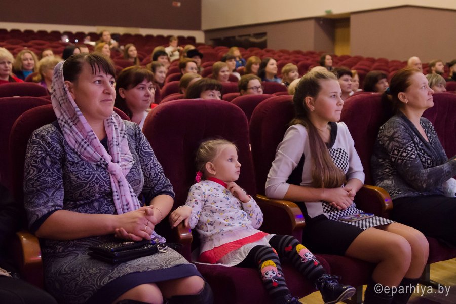 15 октября 2017 года в Гомельском городском центре культуры по благословению епископа Гомельского и Жлобинского Стефана вот уже третий год подряд состоялось мероприятие, посвящённое одним из самых почитаемых в народе праздникам – Покрову Пресвятой Богородицы и Дню Матери. Торжество было организовано в честь жён священнослужителей. По давней традиции их называют мягким и ласковым словом «матушка». Именно на их плечи зачастую ложатся многие заботы жизни прихода. Они не только жёны, хозяйки дома и хранительницы очага, но и часто многодетные матери, воспитательницы, помощницы священника, благотворительницы и общественные деятели. Именно к матушкам было обращено приветственное слово Преосвященнейшего Владыки Стефана, которое и открыло праздничный концерт. В своем искреннем слове Владыка особо отметил будничный труд священнических семей в сёлах. В праздничной программе приняли участие хоры, танцевальные коллективы, солисты и ансамбли Гомеля, Добруша и Жлобина. Архиерейский хор под управлением регента Ольги Поляковой, лауреаты и участники музыкального фестиваля «Христос посреди нас», танцевальный ансамбль Жлобинского городского центра творчества детей и молодёжи «ЭВРИКА», а также директор центра культурного воспитания областного управления департамента охраны Говорушко Александр Викторович – все они своим участием в концерте прославляли подвиг жены и матери, женщины и матушки. После концерта всех гостей ожидали общение и памятные фото. На память о празднике матушки получили подарки. |
