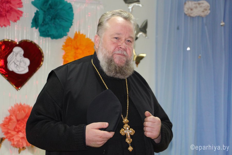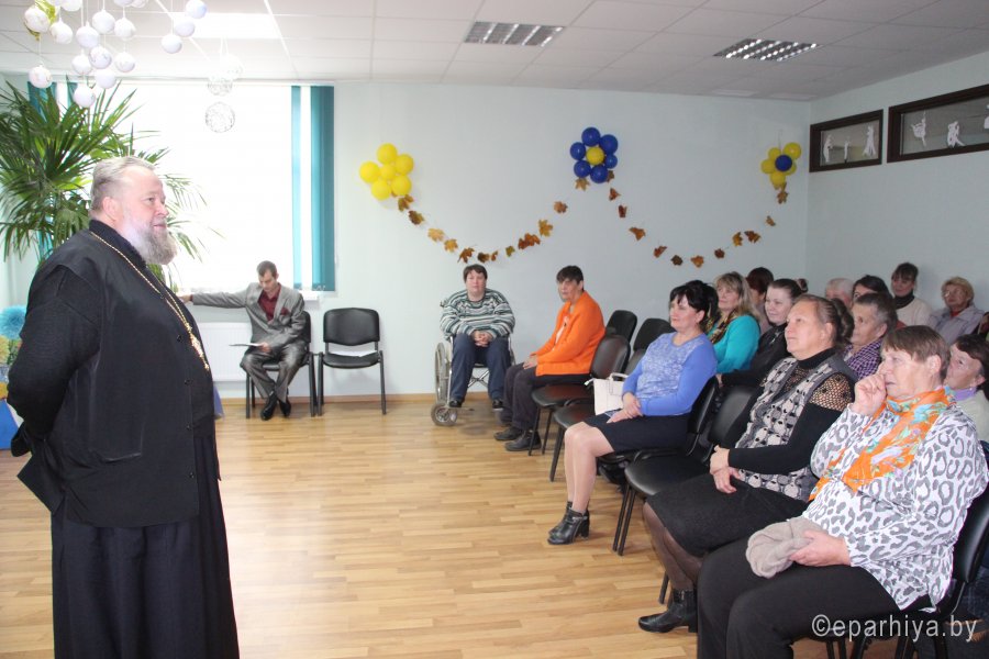 14 октября 2017 г. в день праздника Покрова Пресвятой Богородицы благочинный Буда-Кошелевского округа протоиерей Сергий Пешко посетил Центр дневного пребывания инвалидов. Воспитанники центра, в честь Дня матери, подготовили музыкально-танцевальную программу для своих мам. Священнослужитель по окончании концерта обратился со словами поздравления и благодарности к собравшимся матерям и их чадам, в которых отметил: «Материнская любовь сопровождает человека со дня его рождения и на протяжении всей его жизни. Господь заповедовал нам любить друг друга. Научиться любить не так уж просто, ведь для этого нужен пример. Самый настоящий и достойный пример жертвенной любви показывают нам мамы. За это мы должны всегда отвечать им взаимной любовью и беречь их». |