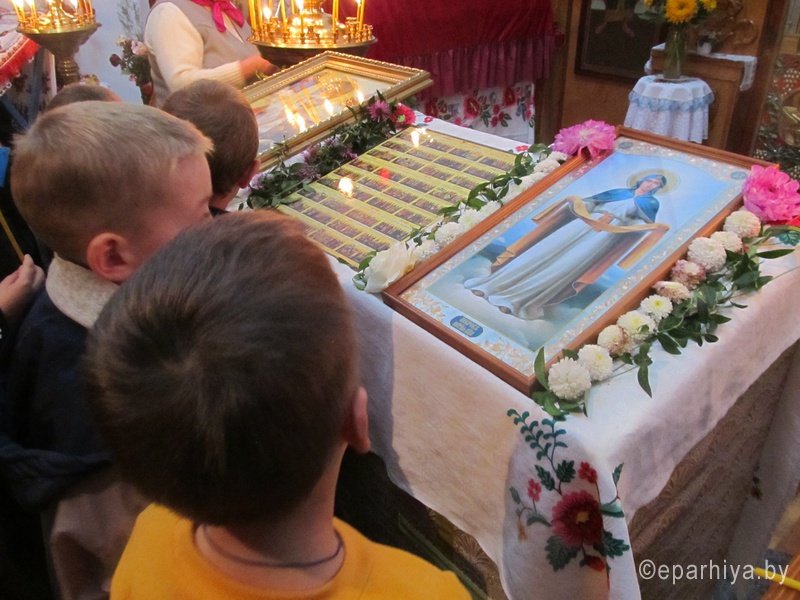 13 октября 2017 года в канун праздника Покрова Пресвятой Богородицы настоятель Свято-Никольского храма аг. Даниловичи протоиерей Андрей Булацкий посетил ГОУ «Даниловичский детский сад-начальная школа» Ветковского района, где состоялось торжественное мероприятие, посвященное празднику Покрова Пресвятой Богородицы и празднованию Дня Матери. На мероприятии присутствовали воспитанники и учащиеся учреждения образования, их родители и учителя, приглашенные гости. Ребята из старшей группы и ученики первого класса исполнили стихи, посвященные празднику Покрова Пресвятой Богородицы и Дню Матери. Дети читали стихотворения о необходимости маминой молитвы, о любви к маме, об уважении к женщине-матери, а малыши с искренне поздравили своих мам и бабушек, спели задушевные песни, показали музыкальные номера и подарили своим мамам красочные поделки и рисунки. Священник поздравил всех присутствующих с праздником Покрова Пресвятой Богородицы, рассказал об истории праздника. А обращаясь к мамам сказал: «В жизни каждого человека все самое доброе и святое связано с именем Матери, которая дарит новую жизнь, воспитывает лучшие человеческие качества, дает первые мудрые уроки. Низкий поклон всем матерям за мудрость, терпение и доброту, за щедрое материнское сердце и неустанные заботы, за безграничную любовь к своим детям. От всей души поздравляю вас с Днем Матери. Пусть каждый день для вас звучат слова восхищения и любви, а ваши дети радуют своими успехами, щедро дарят вам свою нежность и любовь!» 14 октября в праздник Покрова Пресвятой Богородицы учащиеся и преподаватели ГОУ «Даниловичский детский сад-начальная школа» Ветковского района посетили Свято-Никольский храм аг. Даниловичи. Настоятель храма протоиерей Андрей Булацкий провел с учащимися беседу о празднике Покрова Пресвятой Богородицы, рассказал об истории праздника, об устройстве храма. Учащиеся и преподаватели вместе с прихожанами помолились на молебне с акафистом Покрову Пресвятой Богородицы о здоровье матерей. После благословения от священника на хорошую учебу, ребята посетили колокольню храма, где послушали звон и сами смогли попробовать позвонить в колокола. |