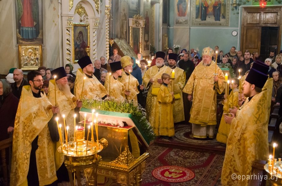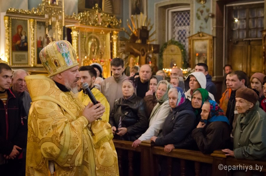 21 октября 2017г., в канун дня памяти святых отцев VII Вселенского собора, Преосвященный Стефан совершил всенощное бдение в Свято-Петро-Павловском кафедральном соборе г. Гомеля. Преосвященному сослужили: секретарь Гомельской епархии протоиерей Георгий Алампиев и духовенство собора. По окончании богослужения Владыка обратился к молящимся со словами Архипастырского назидания. |