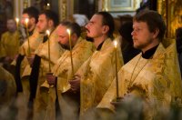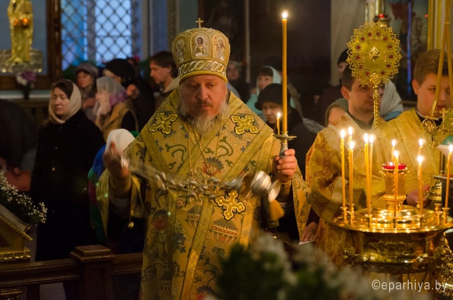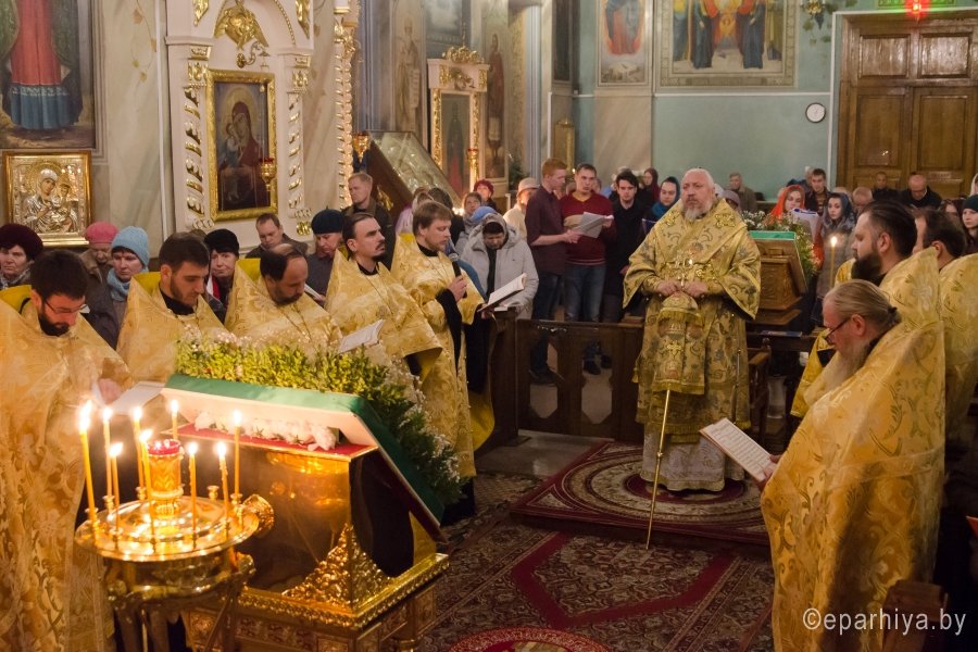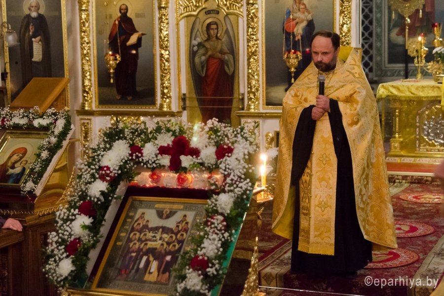 22 октября 2017г., в канун дня памяти прп. Амвросия Оптинского, в Свято-Петро-Павловском кафедральном соборе г. Гомеля было совершено вечернее богослужение с чтением акафиста нараспев. Богослужение возглавил Преосвященнейший Стефан епископ Гомельский и Жлобинский в сослужении секретаря Гомельской епархии протоиерея Георгия Алампиева и духовенства собора. По окончании богослужения Владыка обратился к молящимся со словами Архипастырского назидания. |