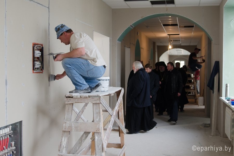 23 октября 2017г. Преосвященнейший Стефан, в сопровождении председателя отдела по архитектуре и строительству Гомельской епархии протоиерея Георгия Тура совершил рабочий визит в реконструируемое здание Гомельского Епархиального Управления. В ходе визита обсуждались текущие вопросы и планы реконструкции комплекса. |