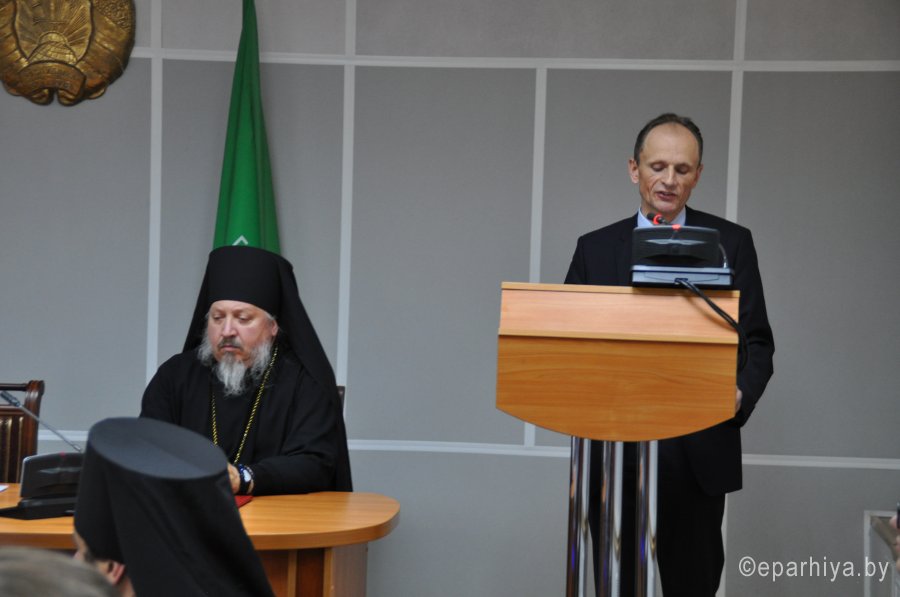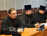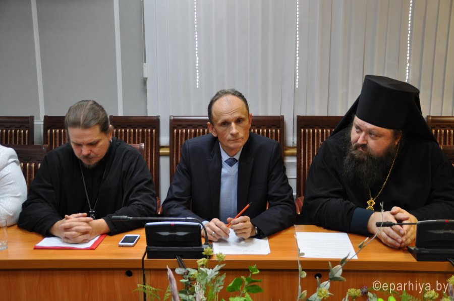25 октября 2017 г. в областном исполнительном комитете г.Гомеля состоялось открытие III областных Покровских образовательных чтений, которые прошли в режиме видеоселекторного совещания на тему «Нравственные ценности и будущее человечества» и транслировалось по всем райисполкомам Гомельской области и администрациям районов г. Гомеля. Заседание возглавили: епископ Гомельский и Жлобинский Стефан, начальник отдела воспитательной и социальной работы Гомельского облисполкома Дробышевская Ирина Юрьевна, прокурор Гомельской области Морозов Виктор Николаевич. Также в семинаре приняли участие: председатель отдела религиозного образования и катехизации Туровской епархии игумен Авксентий (Абражей). Для участия в форуме были приглашены руководители отделов Гомельской епархии, духовенство Гомельской епархии, начальники отделов образования, спорта и туризма, идеологической работы и по делам молодежи райисполкомов, Гомельского горисполкома, директора и заместители директоров по воспитательной работе учреждений дошкольного, общего среднего, профессионально-технического образования. Конференция проводится в рамках реализации Программы сотрудничества между управлением образования Гомельского облисполкома и Гомельской, Туровской епархиями Белорусской Православной Церкви на 2015-2020 годы. Приветственным словом открыла заседание Ирина Дробышева. Обращаясь к участникам, она в своей речи отметила: «Тема нравственного воспитания, безусловно, является актуальной в наше время. Где бы мы не находились, мы обращаем внимание на эти ценности. И очень часто источником большинства проблем, которые существуют в молодежной среде, в рамках семьи, является безнравственность. И мы в таком тесном сотрудничестве с Белорусской Православной Церковью, с коллегами из управления по идеологической работе по делам молодежи и правоохранительными органами обсуждаем эти вопросы, чтобы узнать, что нужно сделать для решения той или иной проблемы» Владыка Стефан в приветственном слове обратился к присутствующим: «В который раз мы с Вами открываем Покровские образовательные чтения, которые за последние несколько лет значительно повысили свой статус и содержание. Особенно отрадно, что уже третий год подряд они имеют статус областных и общеепархиальных, в которых принимают участие Гомельская и Туровская епархии Белорусской Православной Церкви. В этом году тематика наших Чтений «Нравственные ценности и будущее человечества», особенно важная в свете происходящих тревожных событий не только на постсоветском пространстве, но и во всем мире. Уверен, что Покровские образовательные чтения являются площадкой для диалога, обмена опытом и передовых наработок не только в области духовно-нравственного воспитания подрастающего поколения, но и гражданско-патриотического, ибо без одного не может быть и второго. И сегодня это особенно актуально, так как в быстро меняющемся мире молодое поколение в силу объективных причин особенно уязвимо и, в первую очередь, его мировоззренческие ценности и ориентиры, часто незаметно размываемые сегодняшним неконтролируемым потоком информации». С приветственным словом обратился председатель отдела религиозного образования и катехизации Туровской епархии игумен Авксентий (Абражей). Прокурор Гомельской области Морозов В