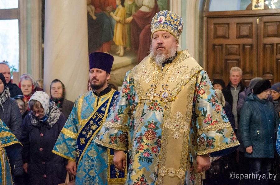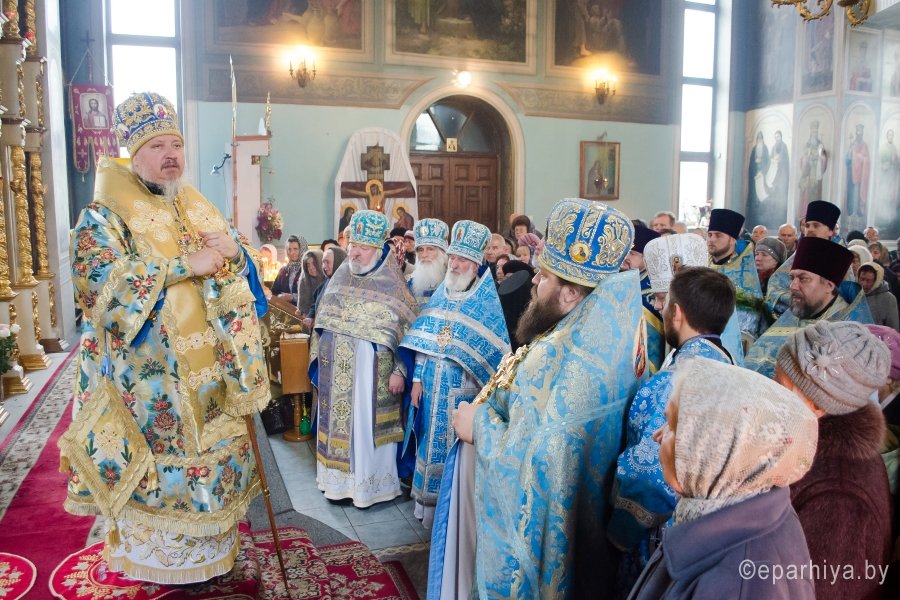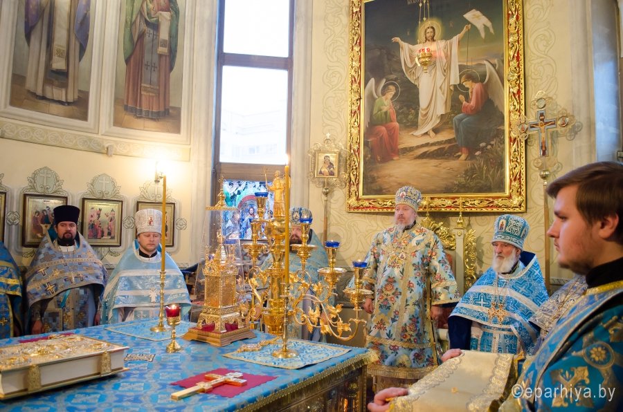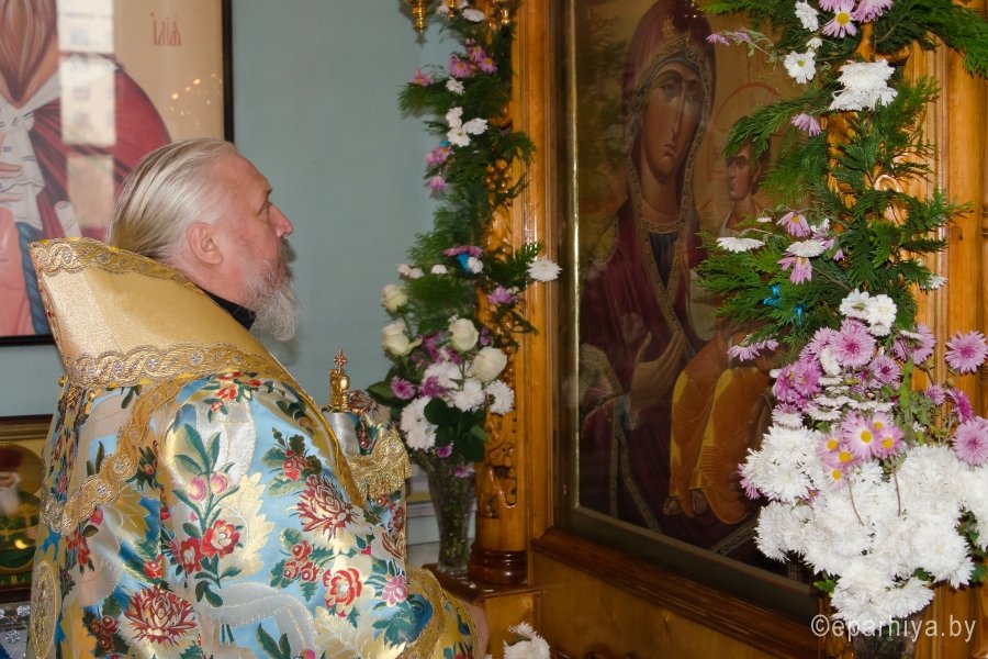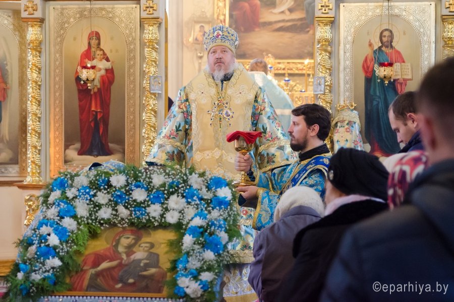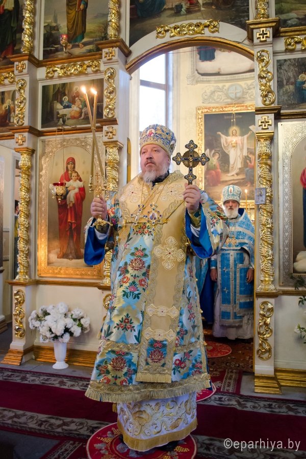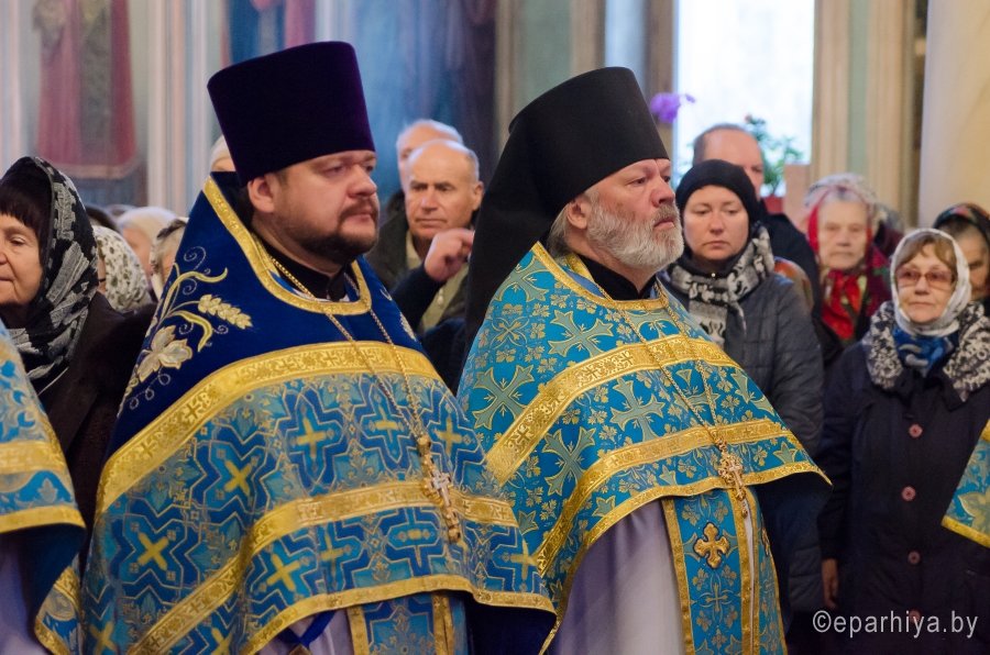 26 октября 2017г., в праздник Иверской иконы Божией Матери, Преосвященный Стефан совершил Божественную литургию в храме иконы Божией Матери "Иверская" в г.Гомеле. Преосвященному сослужили: секретарь Гомельской епархии протоиерей Георгий Алампиев, благочинный монастырей Гомельской епархии архимандрит Амвросий (Шевцов), духовник Гомельской епархии протоиерей Стефан Гладыщук, настоятель храма Иверской иконы Божией Матери в г.Гомеле протоиерей Георгий Тур, благочинный Гомельского городского округа протоиерей Игорь Ольшанов, председатели отделов и настоятели храмов Гомельской епархии. Уставные песнопения исполнил хор храма иконы Божией Матери "Иверская" под управлением регента Лии Сычевой. Проповедь по запричастном стихе произнес клирик храма иконы Божией Матери "Иверская" протоиерей Андрей Шихалов. По окончании богослужения Владыка поздравил причастников с принятием Святых Христовых Таин и обратился к молящимся со словами Архипастырского назидания. |
