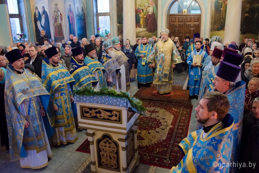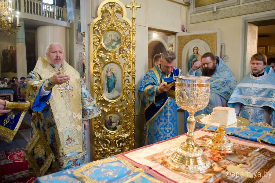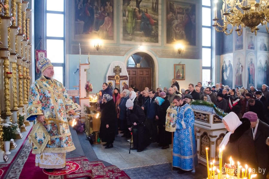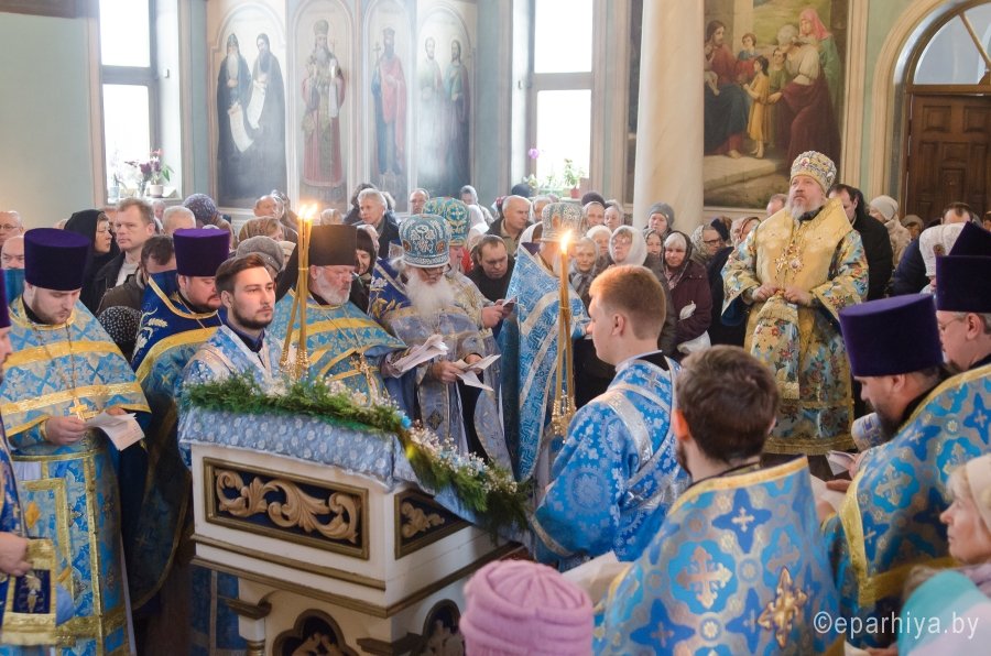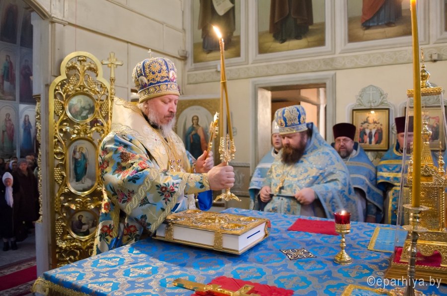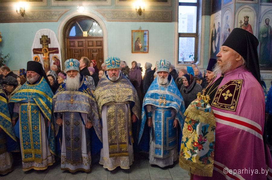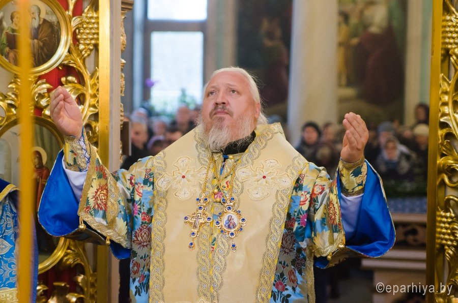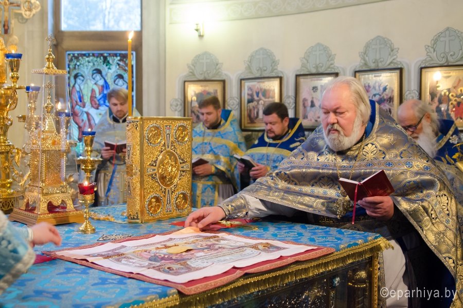 26 октября 2017г., в праздник Иверской иконы Божией Матери, Преосвященный Стефан совершил Божественную литургию в храме иконы Божией Матери "Иверская" в г.Гомеле. Преосвященному сослужили: секретарь Гомельской епархии протоиерей Георгий Алампиев, благочинный монастырей Гомельской епархии архимандрит Амвросий (Шевцов), духовник Гомельской епархии протоиерей Стефан Гладыщук, настоятель храма Иверской иконы Божией Матери в г.Гомеле протоиерей Георгий Тур, благочинный Гомельского городского округа протоиерей Игорь Ольшанов, председатели отделов и настоятели храмов Гомельской епархии. Уставные песнопения исполнил хор храма иконы Божией Матери "Иверская" под управлением регента Лии Сычевой. Проповедь по запричастном стихе произнес клирик храма иконы Божией Матери "Иверская" протоиерей Андрей Шихалов. По окончании богослужения Владыка поздравил причастников с принятием Святых Христовых Таин и обратился к молящимся со словами Архипастырского назидания. |
