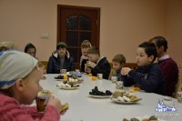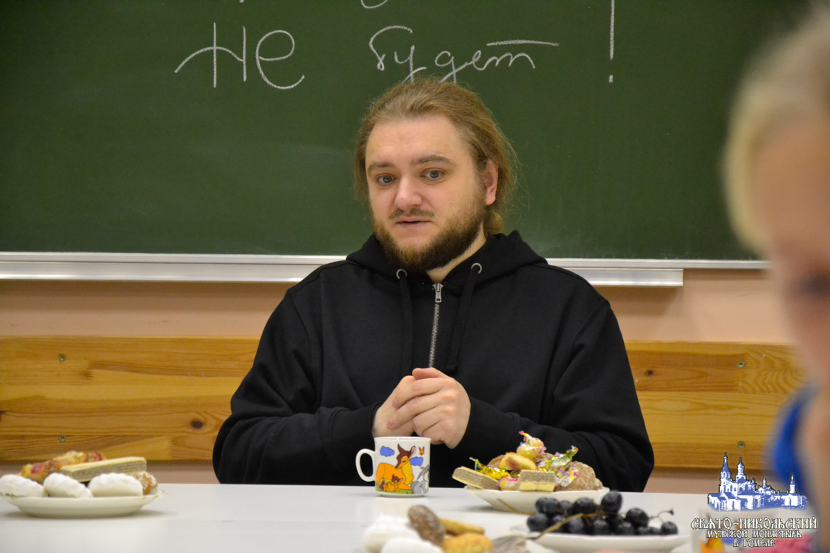 В Димитровскую субботу в надвратном храме св. прп. Дионисия Радонежского архимандрит Амвросий (Шевцов), наместник Никольского монастыря, совершил детскую миссионерскую литургию. Архимандрит Савва (Мажуко) регентовал народным хором из детей и их родителей, произнес проповедь (https://www.youtube.com/watch?v=6on_cvKghVE). Игумен Феодорит (Золотарев) исповедовал маленьких прихожан и воспитанников воскресной школы. После богослужения причастники собрались в аудитории школы. Подкрепившись чайком с пряниками, родители и дети вели дружеские беседы. |