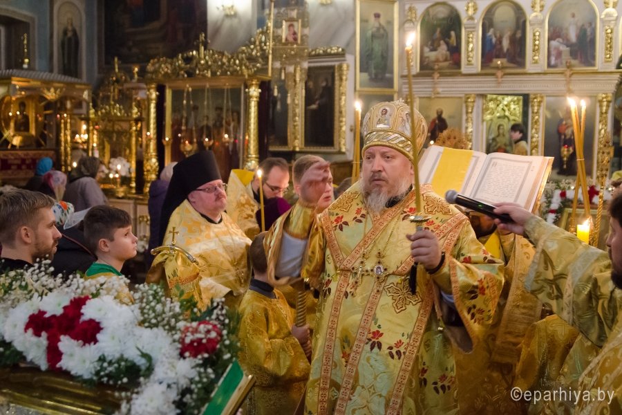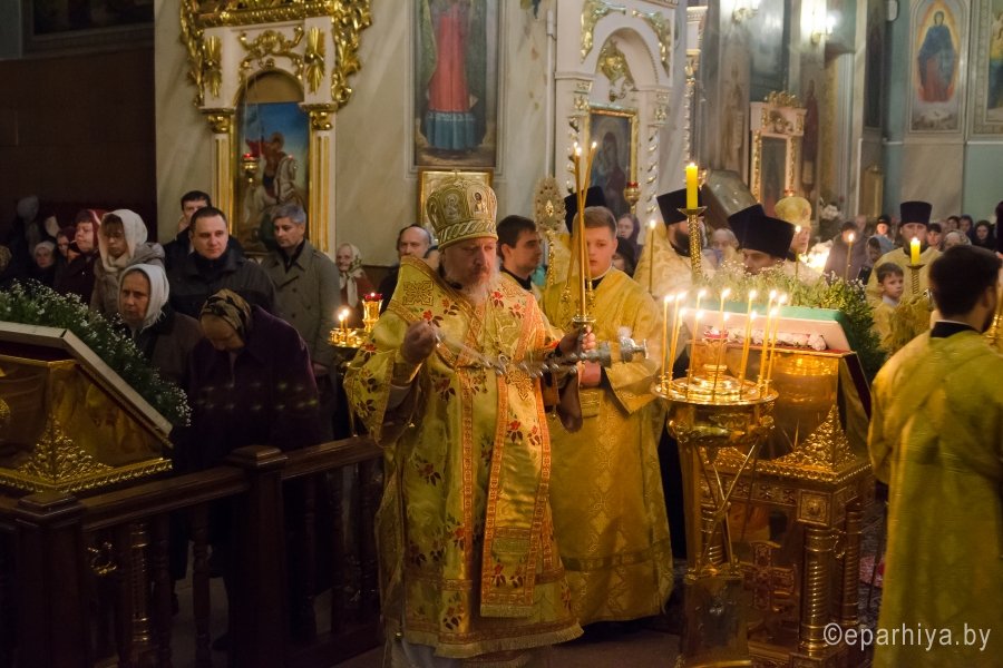 28 октября 2017г., в канун Недели 21-й по Пятидесятнице, Преосвященный Стефан совершил всенощное бдение в Свято-Петро-Павловском кафедральном соборе г.Гомеля. Преосвященному сослужили: секретарь Гомельской епархии протоиерей Георгий Алампиев и духовенство собора. По окончании богослужения Владыка обратился к молящимся со словами Архипастырского назидания. |