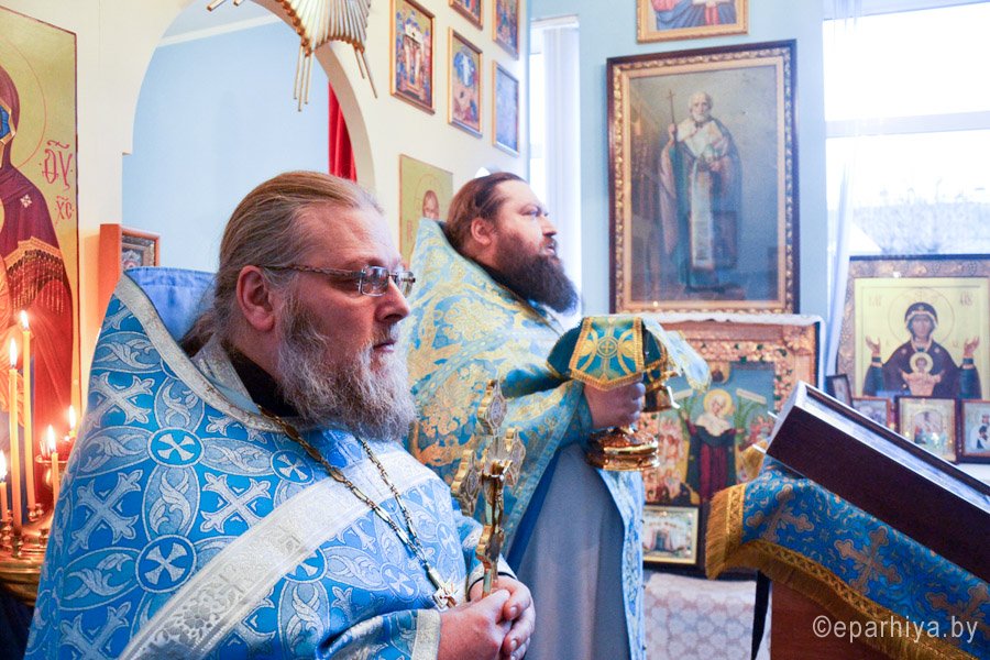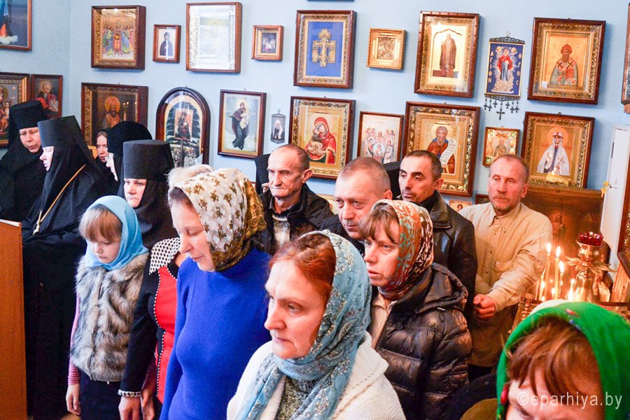 29 октября в домовом храме монастырского подворья Свято-Тихвинского женского монастыря в д. Бобовичи, освященном в честь иконы Божией Матери "Спорительница хлебов", архимандрит Амвросий (Шевцов), благочинный монастырей Гомельской епархии, совершил Божественную литургию. Его высокопреподобию сослужил протоиерей Вадим Соколов, священник Тихвинского монастыря. За богослужением молились сестры Тихвинской и Кормянской обителей. Настоятельница Свято-Тихвинского монастыря игумения Вера (Афонькина) и старшая сестра Иоанно-Кормянского монастыря монахиня Архелая (Новикова) пели на клиросе. Слово после чтения Евангелия сказал о. Амвросий, после литургии Его высокопреподобие поздравил всех с принятием Святых Христовых Тайн и престольным праздником. |