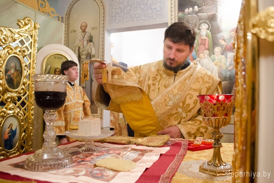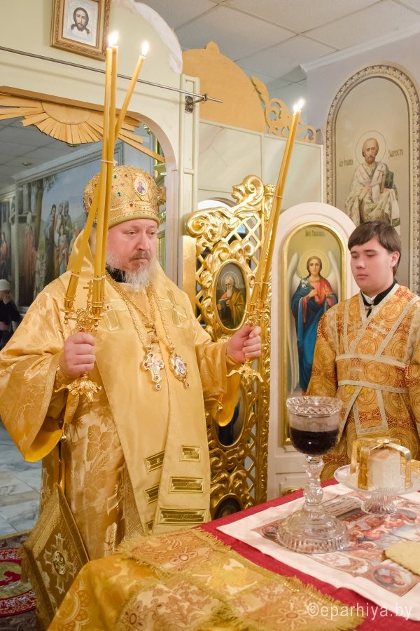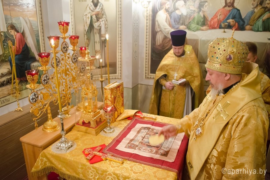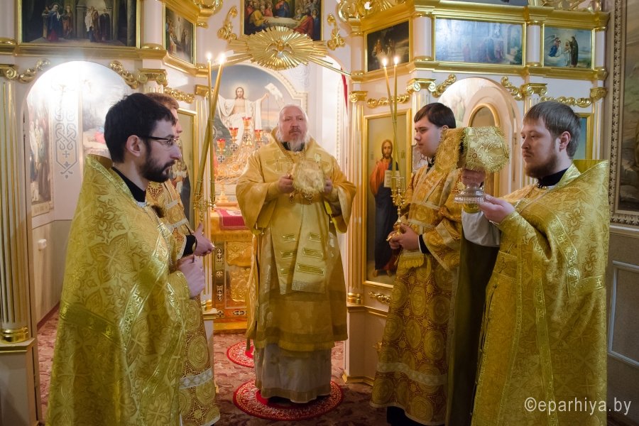 30 октября 2017г., в понедельник 22-й седмицы по Пятидесятнице, Преосвященнейший Стефан в сослужении духовенства собора возглавил Божественную литургию в криптовом храме Свято-Петро-Павловского кафедрального собора г.Гомеля. По окончании богослужения епископ Стефан поздравил причастников с принятием Святых Христовых Таин и обратился к молящимся со словами Архипастырского назидания. |