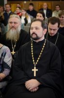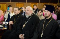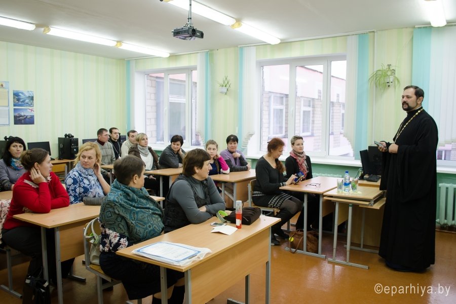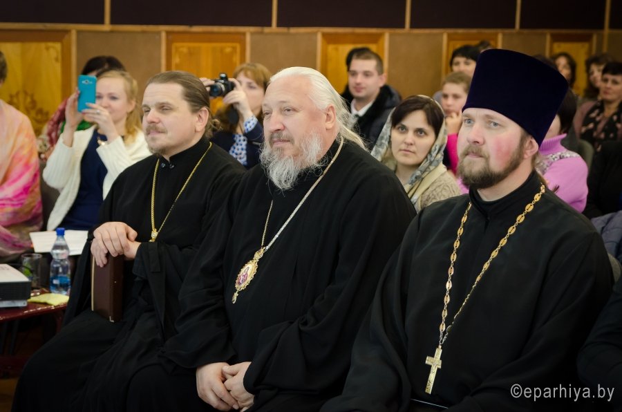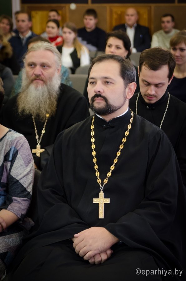 31 октября 2017 года Гомельская епархия совместно с Отделом образования, спорта и туризма Лоевского района провели районный этап III Областных Покровских образовательных чтений. Встреча прошла на базе ГУО «СШ №1 им. Козлова г.п. Лоев». Начались Покровские чтения со сказки «Теремок», посвященной празднику Покрова Божьей Матери, которую представили воспитанники детского сада №1. С приветственным словом к собравшимся обратился Преосвященнейший Стефан, епископ Гомельский и Жлобинский. В своем слове Владыка отметил важность духовно-нравственного воспитания в семье и его актуальность в наше время. Тема Свято-Покровских чтений: «Нравственные ценности и будущее человечества». В конференции приняли участие председатели отделов Гомельской епархии и духовенство Лоевского благочиния, представители Отдела образования, спорта и туризма Лоевского и Гомельского районов, директора и заместители директоров учреждений образования Лоевского района. В рамках мероприятия прошла церемония награждения участников творческого конкурса «Узнаем Гомельщину вместе». Дипломом II степени отмечена работа учащихся УО «Лоевский государственный педагогический колледж», дипломом III степени награжден учащийся УО «Лоевский государственный педагогический колледж», диплом II степени вручен преподавателям УО «Лоевский государственный педагогический колледж», поощрительными грамотами отмечены работы учащихся ГУО «Сутковский детский сад – средняя школа » и ГУО «Малиновский детский сад – базовая школа». Начальник отдела образования, спорта и туризма Лагуто Татьяна Ивановна и заместитель директора по основной работе ГУО «Бывальковский детский сад – средняя школа» Жук Людмила Петровна представили отчет в виде доклада о работе по нравственному воспитанию в учреждениях образования Лоевского района Подытожила пленарное заседание Жгирова Наталья Сергеевна, координатор отдела Гомельской епархии по связям с общественностью. После пленарного заседания началась работа секций. Секцию для преподавателей естественных дисциплин возглавил протоиерей Вадим Кочан, председатель отдела РОИК Гомельской епархии. С учителями гуманитарных предметов беседовал протоиерей Артемий Кривицкий, председатель миссионерского отдела Гомельской епархии. |