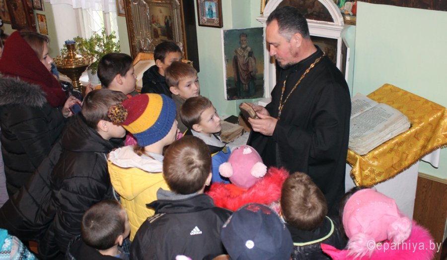 Более сотни учащихся в дни осенних каникул побывали на экскурсии в православном храме свт. Николая Чудотворца городского поселка Корма. Школьники приезжали в сопровождении педагогов из Лужковской и Ворновской, Барсуковской и Хизовской школ, приходила большая группа из СШ№1. Настоятель храма иерей Виталий Лехнович показал ребятам несколько короткометражных фильмов: об истории выбора православной веры князем Владимиром и Крещении Руси, об устройстве церкви и особенностях храмовой архитектуры, о Заповедях Божьих и поведении в храме. Видеосюжеты сопровождались беседами с разъяснением вопросов. Также все гости могли ознакомиться с выставкой старинных богослужебных книг. Детям было интересно узнать, что находится в алтаре храма, как используется та или иная церковная утварь, что такое Евангелие, на каком языке печатались старинные книги и почему новый абзац называют даже до настоящего времени «с красной строки» и о многом другом. Прогулялись школьники и возле строящегося нового храма, где им объяснили, из каких частей состоит здание, для чего нужны колокола. Такие своеобразные уроки, на которых детям в доступной форме преподаются азы православия, для Кормянского района не новинка. Школьники из учебных заведений со своими педагогами в дни каникул посещают храм довольно часто. Это помогает всем вместе «Сеять разумное, доброе, вечное!». |