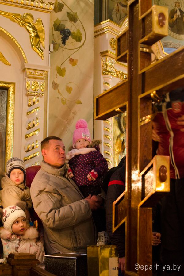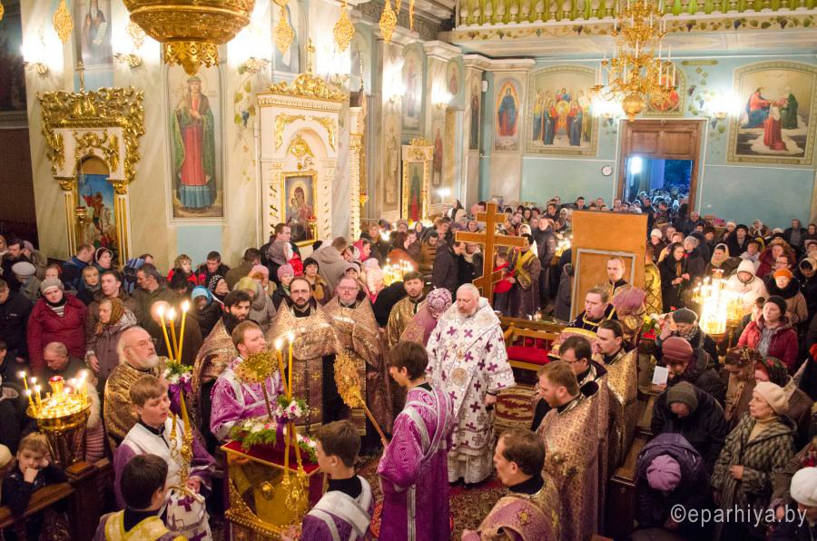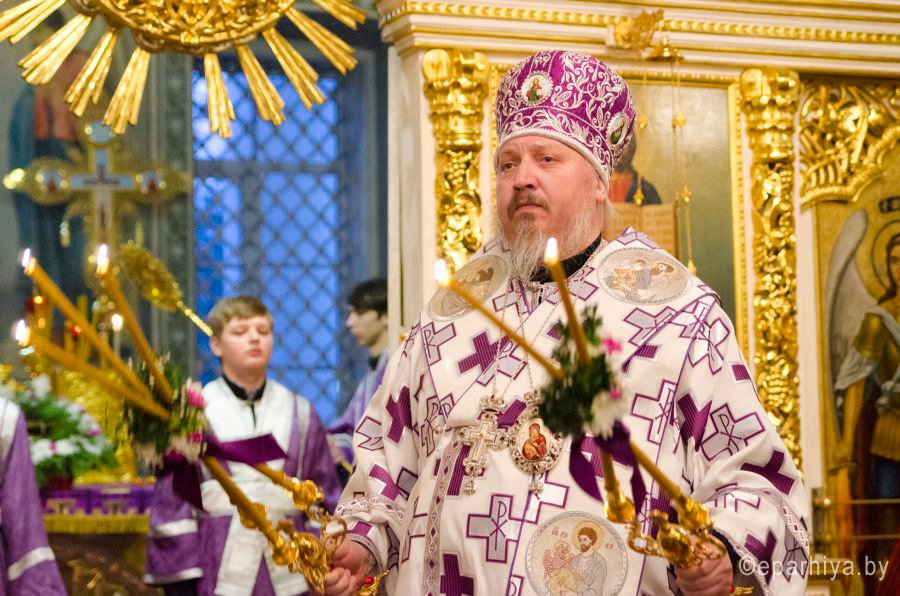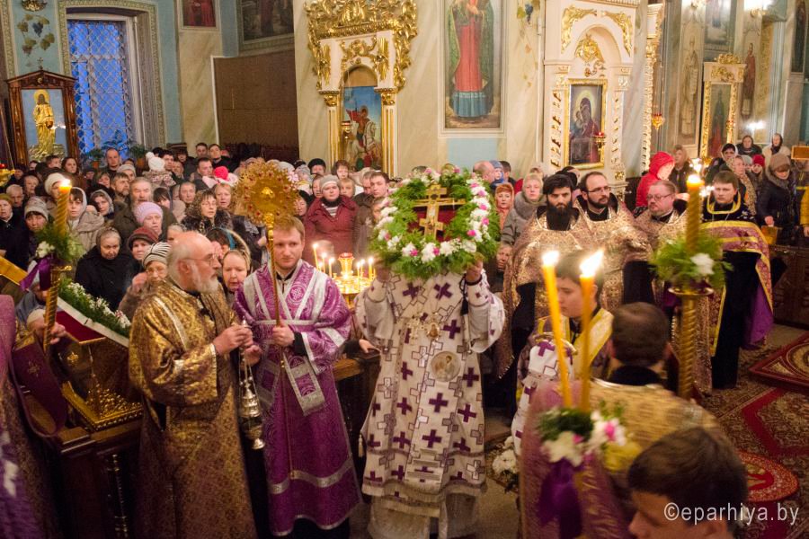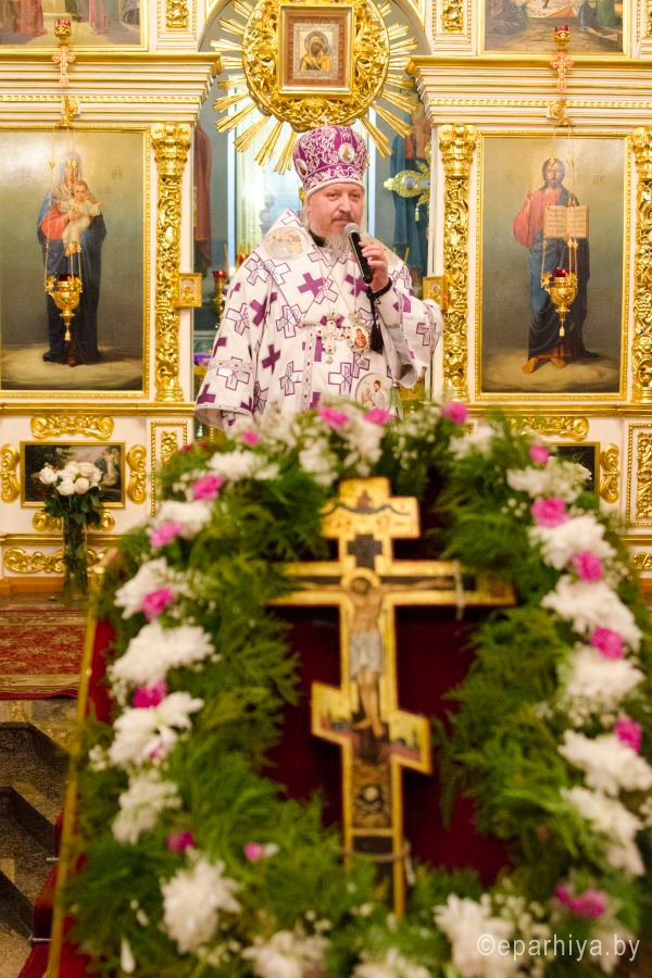 14 марта 2015г., в канун Недели 3-й Великого Поста, Крестопоклонной, Преосвященнейший Стефан возглавил всенощное бдение с чином выноса Креста в Свято-Петро-Павловском кафедральном соборе г.Гомеля. Преосвященнейшему сослужили: секретарь Гомельской епархии протоиерей Георгий Алампиев и духовенство собора. |