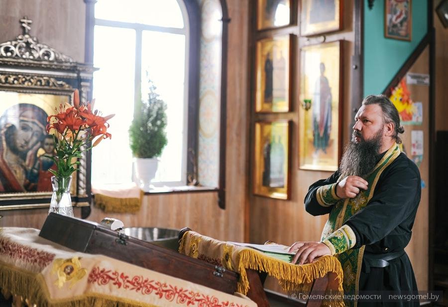 В Старой Волотове над крутым обрывом стоит новый, с золотыми крестами и зелёными куполами, но хранящий в себе древнюю память храм Николая Чудотворца. Прихожане называют его самым домашним и уютным храмом в городе. Небольшой, с множеством живых цветов, он действительно по душе тем, кто приходит сюда помолиться, причаститься, послушать проповеди… Протоиерей Игорь Жабняк служит здесь уже 12 лет – с момента реставрации. Освящена же церковь 17 октября 2005 года, именно тогда в её историю вписалась новая строка – храм отремонтирован и готов вновь после череды разрушений и закрытий распахнуть свои двери для прихожан. Отец Игорь – первый настоятель Николаевской церкви более чем за сто лет, и на сегодня он здесь единственный священник. – Этот храм с историей, – говорит отец Игорь. – Сюда просто зашёл, вдохнул аромат времени – и выходить не хочется… Храм святителя Николая Чудотворца в Волотове строился с 1799-го по 1805 год на средства и по инициативе графа Николая Румянцева вместо старой деревянной обветшавшей церкви. Для строительства храма был приглашён английский архитектор Джон Кларк, а для росписи алтаря Румянцев специально отправлял учиться местного мастера иконописца за границу. От центра Гомеля до храма в Волотове граф Румянцев организовал комфортабельное водное сообщение по реке Сож. Это был первый прогулочный маршрут в городе Гомеле. В 1846 году при новом владельце гомельской усадьбы князе И. Ф. Паскевиче крестьяне деревни Волотова были переселены в деревню Ивановку, в связи с этим Николаевская церковь была закрыта почти на 50 лет. И только в 1893-м, после осмотра храма епархиальным архитектором Комбуровым, был выполнен проект обновления Николаевской церкви. Но так как церковь имела немноголюдный приход, службы в ней проводились лишь три раза в год. Новая жизнь храма началась после его освящения в 2005-м году. В торжествах по освящению церкви митрополит Минский и Слуцкий Филарет преподнёс в дар приходу старинную икону святителя Николая Чудотворца. Возрождённый замечательный памятник архитектуры периода классицизма, являющийся, кстати, самой древней каменной церковью Гомеля, полностью соответствует оригиналу в его лучшие годы. Стены нового храма украшены панно, везде – живые цветы. Сюда приходят взрослые и дети как к себе домой, беседуют со священником, ставят свечи и просят помощи у Николая Чудотворца. При храме работает воскресный кружок для детей, где ребята не только изучают Священное Писание, но и рукодельничают. Однако основное назначение любого храма, по словам батюшки, – это молитва. Первые богослужения отец Игорь совершал в храме в деревне Поколюбичи сразу после рукоположения в священный сан. Спустя год молодой священник поступил в семинарию. Начался же его путь веры ещё в раннем детстве. – Мой отец – офицер, запускал ракеты в космос, и я вырос на космодроме Плесецк, хотя родился в Гомеле. Конечно, атеистическое время накладывало свой отпечаток, папа старался избегать разговоров о Боге. А вот дедушка по воскресеньям надевал лучшую одежду, зажигал лампаду и шёл в храм, – вспоминает священнослужитель. Неудивительно, что ещё ребёнком будущий священник искренне веровал, веровал он и служа в армии, и учась в медицинском училище, и работая зубным техником в поликлинике. Все эти годы он постоянно задавался вопросом: «Бог так 