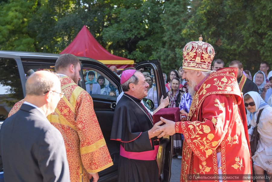 Ковчег с мощами святого великомученика Пантелеимона на постоянное пребывание доставлен в Свято-Петро-Павловский кафедральный собор. Его привезла делегация из Италии во главе с епископом Локри и Джераче Франческо Олива. Год назад частицу мощей святого уже доставляли в Гомель из итальянского города Джераче, тогда она впервые за 350 лет покинула место своего постоянного пребывания. Епископ Гомельский и Жлобинский Стефан отметил, что святыня имеет большое значение для всех нас и особенно для жителей Гомельской земли, которая пострадала от катастрофы на Чернобыльской АЭС. «В этот день мы верим, что присутствие такой величайшей святыни на Гомельщине – это дар Божий для всех нас», – сказал владыка. Частица предплечья будет храниться в серебряном ковчеге, изготовленном мастерами в этом году на горе Афон на пожертвования гомельчан. Теперь любой желающий может приложиться к святыне, попросить помощи и защиты. newsgomel.by |