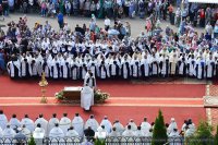 В агрогородке Корма у стен Свято-Покровского храма Свято-Иоанно-Кормянского женского монастыря прошли торжества по случаю 180-летия со Дня рождения и 100-летия со Дня преставления молитвенника земли Гомельской Иоанна Кормянского. Здесь, среди сотен молящихся людей, казалось, присутствовал сам святой. Батюшка Иоанн – пастырь, который жил с верой в сердце, свято трудился на благо людей и церкви на протяжении всей жизни. Не на словах, а на деле, каждый день и час жил во Христе и со Христом. Родился Иоанн Гашкевич в семье священника в деревне Стрешин Рогачёвского уезда Могилёвской губернии в ночь на 7 октября (ст.ст.) (20 октября н.ст.) 1837 года. Почти всю свою жизнь отслужил на приходе в деревне Огородня. Жена Мария родила ему четверых детей. После рождения младшего сына батюшка Иоанн посетил Киево-Печёрскую Лавру и получил благословение на монашеский образ жизни. Земная жизнь отца Иоанна окончилась осенью 1917 года. А в 1991 году были обнаружены его нетленные мощи. Настоятель Покровской церкви иеромонах Стефан (Нещерет), ныне епископ Гомельский и Жлобинский, перенёс мощи под своды храма, где они пребывают по сей день. Торжественную Божественную Литургию у мощей святого возглавил митрополит Минский и Заславский Павел, Патриарший Экзарх всея Беларуси в сослужении сонма Архиереев из Беларуси и стран ближнего зарубежья. Перед началом службы в беседе с журналистами митрополит Павел отметил: – Святые объединяют нас всех, неслучайно сегодня сотни паломников съехались на Кормянскую землю, чтобы почтить память праведного Иоанна Кормянского, помолиться перед его святыми мощами, обратиться к нему, может со словами благодарности, а может, – просьбы. И мы сегодня будем молиться и просить, чтобы Господь благословил нашу землю и наш народ. Среди тех, кто с замиранием сердца ожидал незримой встречи с праведником – преподаватель Гомельского медицинского университета, жена священнослужителя Оксана Кононова. Женщина говорит, что приехала сюда с добрым настроением для поклонения всеми любимому батюшке. «Несмотря на сто лет со дня преставления, он – всегда с нами», – говорит она. Действительно, на торжества съехались те, кто хотел получить заряд Божественной энергии, и, они, несомненно, его получили. Верующие поклонились мощам, попросили благословения у батюшки Иоанна, многие – причастились. По окончании литургии в деревне Огородня прошло освящение поклонного креста на месте бывшего храма святого Николая Чудотворца, в котором служил Иоанн Кормянский. newsgomel.by |