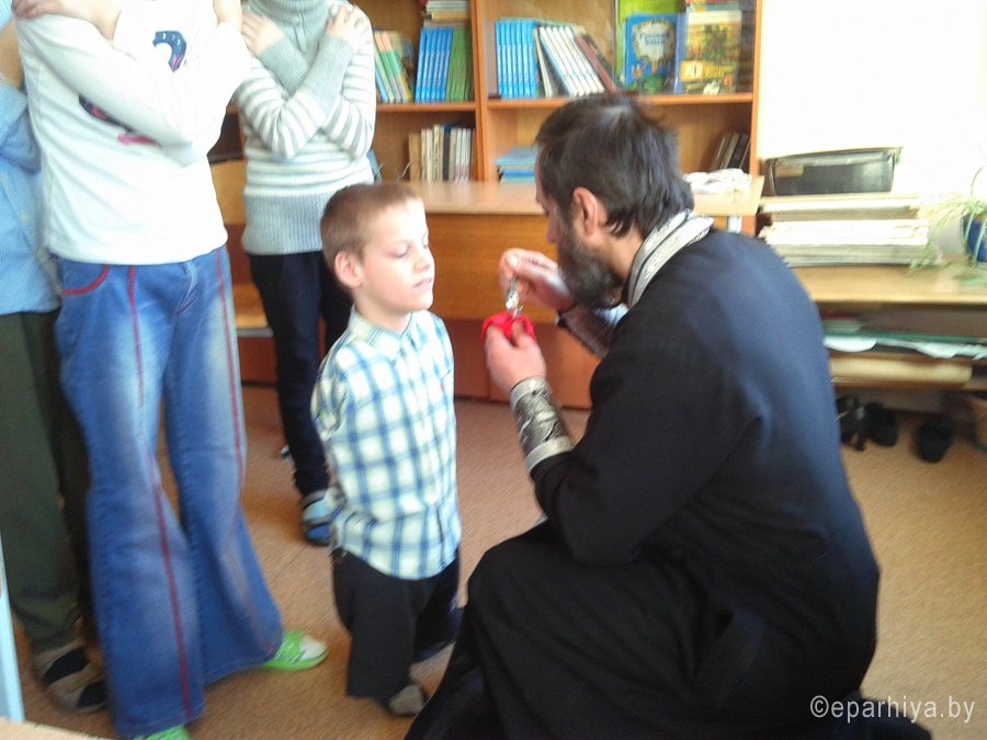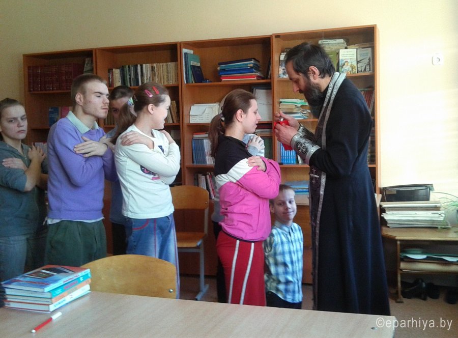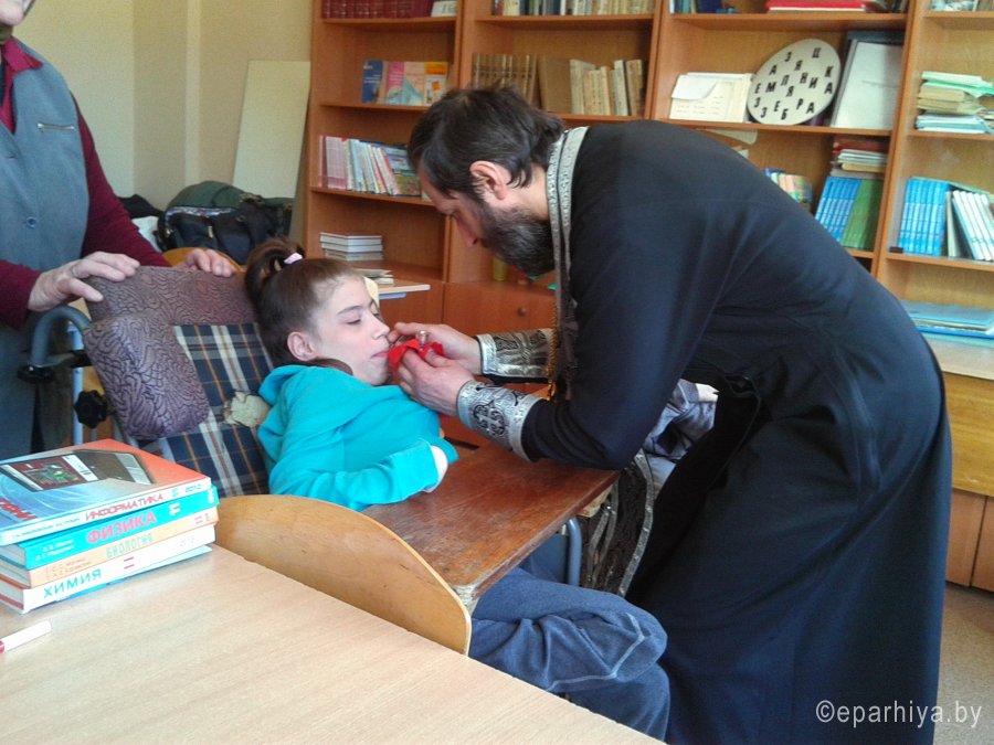 16 марта 2015 г. настоятель Прихода храма Покрова Пресвятой Богородицы в г. Речица, протоиерей Николай Ефименко вместе с прихожанами храма посетил Речицкий интернат для детей с физическими отклонениями. Священник рассказал ребятам о церковных Таинствах и о главном Таинстве Церкви — Евхаристии. Протоиерей Николай исповедовал и причастил воспитанников интерната. Священник в своем напутственном слове сказал: «Духовная жизнь православного христианина невозможна без причащения Тела и Крови Христовой. Приобщаясь Святых Даров, верующие освящаются силой Святого Духа и соединяются с Христом Спасителем и друг с другом, составляя единое Тело Христово». |