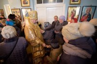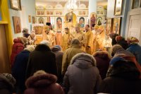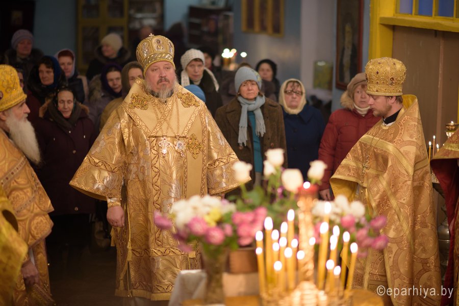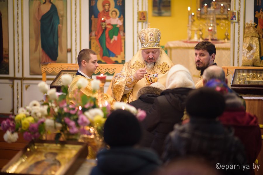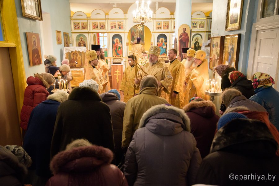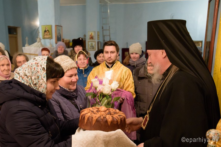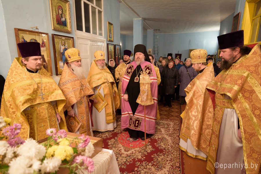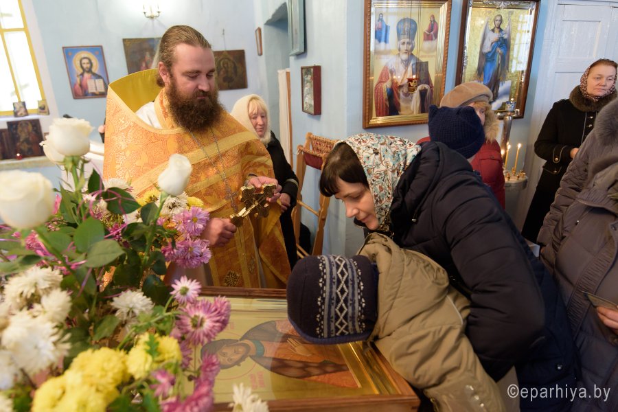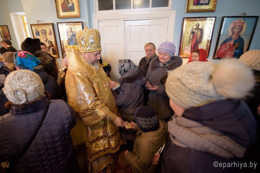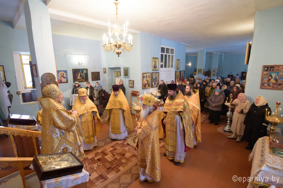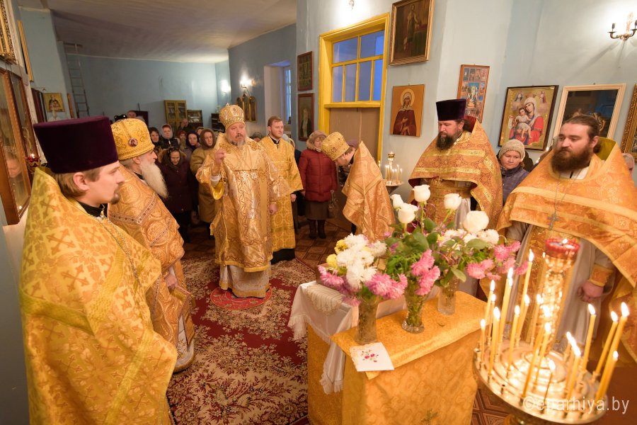 Божественную литургию в день памяти св.блгв.кн.Александра Невского в одноименном храме аг.Холмеч Речицкого благочинного округа совершил 6 декабря 2017г. Преосвященный Стефан, епископ Гомельский и Жлобинский. Преосвященному сослужили: секретарь Гомельской епархии протоиерей Георгий Алампиев, благочинный Речицкого округа протоиерей Алексей Пешко, настоятель прихода иерей Алексей Заболоцкий и духовенство округа. По окончании богослужения Владыка поздравил причастников с принятием Святых Христовых Таин, обратился к молящимся со словами Архипастырского назидания и в память об этом дне раздал всем присутствующим иконки. |