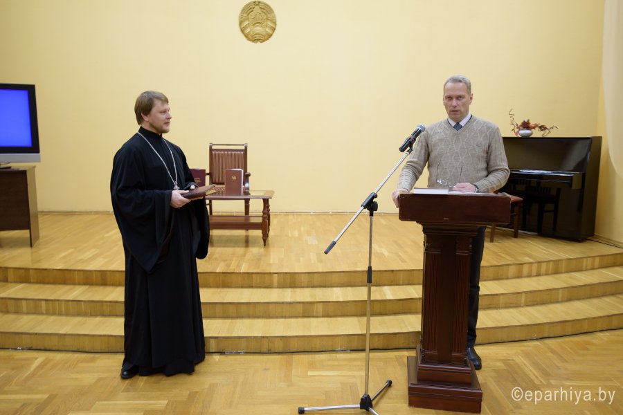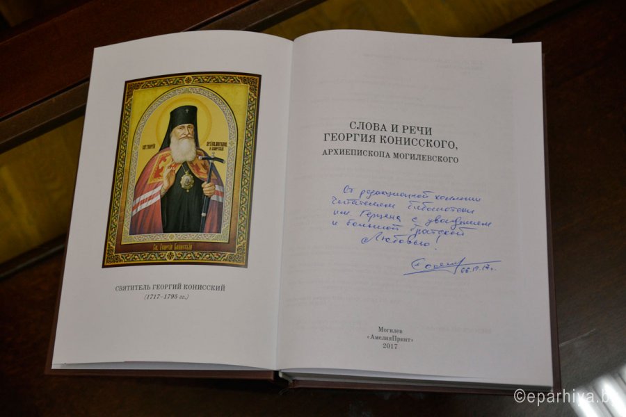 "Георгий есть один из самых достопамятных мужей минувшего столетия. Жизнь его принадлежит истории…" А.С. Пушкин К 300-летию со дня рождения святителя Георгия (Конисского) архиепископа Могилевского, 6 декабря в центральной городской библиотеке им.А.И.Герцена состоялась творческая встреча с Сергеем Эдуардовичем Сомовым, кандидатом филологических наук, доцентом, заведующим кафедры литературы и межкультурных коммуникаций УО "Могилевский государственный университет им.А.А.Кулешова", исследователем наследия святителя. В презентации приняли участие Секретарь Гомельской епархии протоиерей Георгий Алампиев, наместник Никольского монастыря архимандрит Амвросий (Шевцов), архимандрит Савва (Мажуко), председатели отделов и духовенство Гомельской епархии. Приветственным словом открыл презентацию протоиерей Георгий Алампиев. В своём обращении к присутствующим, он представил гостя и поздравил всех с общецерковным прославлением белорусских святых праведного Иоанна Кормянского и святителя Георгия Конисского. Сергей Эдуардович презентовал книгу "Слова и речи святителя Георгия Конисского", который представляет собой сборник ораторских произведений и обращений к королям и монархам России и Европы. В рамках встречи, гость из Могилевсой епархии рассказал о вехах святителя, о его тяжком житии, о котором знают сейчас очень мало. В ХХ веке было написано всего две книги про человека, занимающего исключительное место в истории. Канонизация и торжественное прославление архиепископа Могилевского и Белорусского Георгия, как месточтимого святого, состоялось 5-6 августа 1993 г. в г. Могилеве. Торжество возглавил Патриарший Экзарх всея Беларуси Митрополит Минский и Слуцкий Филарет при участии всех членов Синода Белорусской Православной Церкви: архиеп. Могилевского и Мстиславского Максима, архиеп. Гродненского и Волковысского Валентина, еп. Брестского и Кобринского Константина, еп. Витебского и Оршанского Димитрия, еп. Пинского и Лунинецкого Стефана, еп. Гомельского и Жлобинского Аристарха, еп. Полоцкого и Глубокского Глеба, еп. Новогрудского и Лидского Константина, еп. Туровского и Мозырского Петра, управляющего делами Белорусской Экзархии прот. Иоанна Хорошевича. А 1 декабря 2017г. во второй день заседания работы Архиерейского Собора 2017г. было принято решение об общецерковном прославлении в лике святых святителя Георгия (Конисского). По окончании встречи Секретарь Гомельской епархии протоиерей Георгий Алампиев от имени Преосвященного Стефана, епископа Гомельского и Жлобинского, преподнес в дар епископу Могилевскому и Мстиславскому Софронию и Сергею Эдуардовичу Сомову изданную в Гомельской епархии книгу "Мартиролог Гомельской епархии 1917 – 1953. Биографический справочник", в который вошли биографические сведения о 282 репрессированных представителях духовенства и простых верующих, проживавших и совершавших свое служение на территории Гомельщины. |