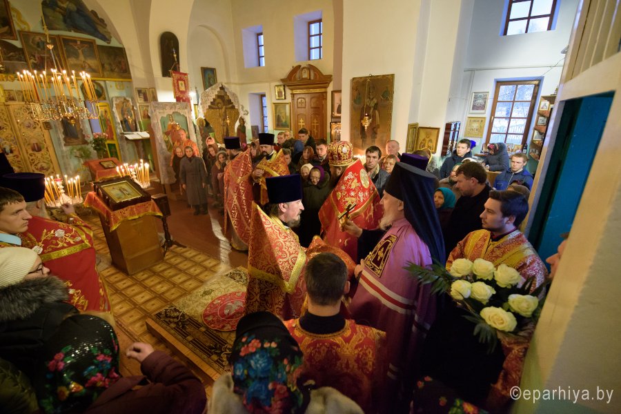Божественную литургию в день памяти св.вмц.Екатерины в одноименном храме аг.Гадичево 7 декабря 2017г. совершил Преосвященный Стефан, епископ Гомельский и Жлобинский. Преосвященному сослужили: благочинный монастырей Гомельской епархии архимандрит Амвросий (Шевцов), благочинный Гомельского районного округа протоиерей Артемий Кривицкий и духовенство округа. По окончании богослужения Владыка поздравил причастников с принятием Святых Христовых Таин и обратился к молящимся со словами Архипастырского назидания. |