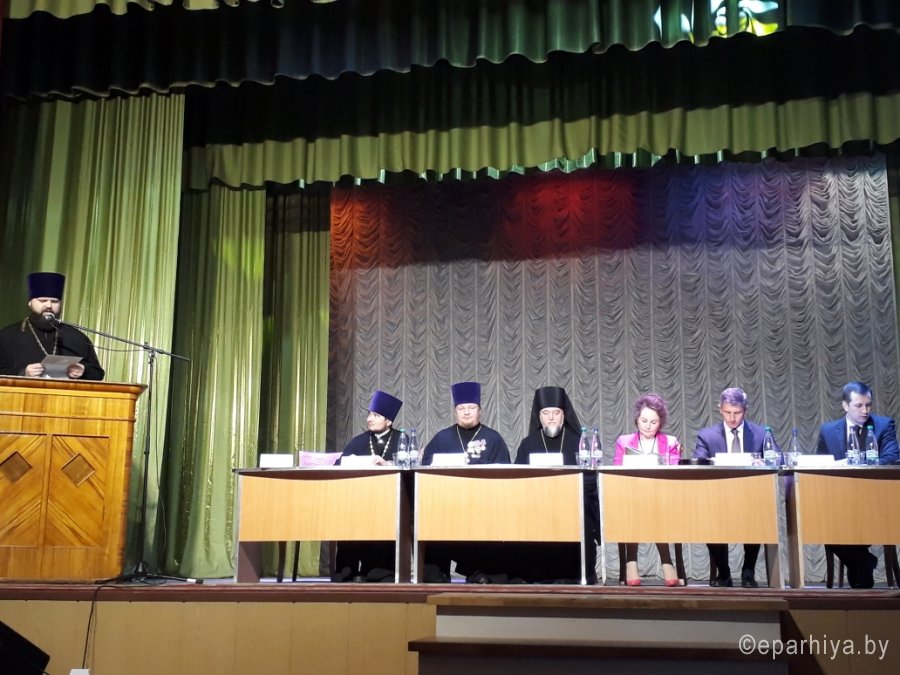 По приглашению епископа Клинцовского и Трубчевского Владимира делегация из Гомельской епархии во главе с председателем отдела по работе с молодёжью иереем Дмитрием Мельниковым приняла участие в работе V Рождественских образовательных чтений Клинцовской епархии по теме «Нравственные ценности и будущее человечества», тема которы объединила представителей педагогического сообщества, духовенства и работников культуры в поисках эффективных путей духовно-нравственного воспитания подрастающего поколения. С приветственными словами к участникам форума обратился епископ Клинцовский и Трубчевский Владимир. Правящий архиерей, в частности, отметил, что тема Чтений немыслима без церковного мышления, что все те, кто составляет Церковную полноту, призваны являть собой пример веры действующей любовью, утверждать высокие нравственные нормы человеческого бытия, созидать мир и гражданское согласие. С приветственным словом на пленарном заседании выступили: помощник губернатора Брянской области по вопросам религий Лариса Ивановна Колинко, представитель Брянской митрополии иерей Иоанн Славицкий, руководители города Клинцы. Приветственное слово от епископа Гомельского и Жлобинского Стефана было предоставлено иерею Димитрию Мельникову, в котором было выражены пожелания на дальнейшее сотрудничество двух епархий. Далее Гомельская делегация приняла участие в презентации-беседе «1917-2017: уроки столетия», модераторами которых выступили иерей Серафим Похожай, заведующий епархиальным агиологическим отделом Клинцовской епархии и Наталья Михайловна Афонина, библиотекарь зала искусств МБУК «Новозыбковская городская центральная библиотека». Затем работа продолжилась по секциям. |