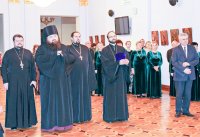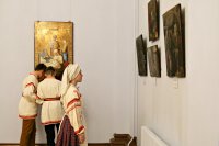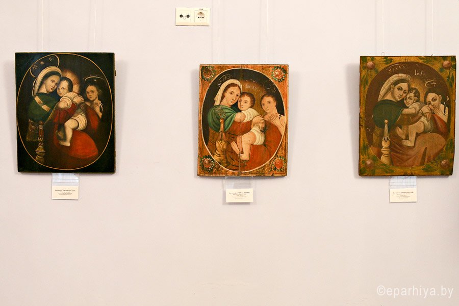 В 2015 году по инициативе Епископа Гомельского и Жлобинского Стефана в Гомельской епархии развернута работа по сохранению, реставрации и дальнейшему изучению памятников церковного искусства нашего региона. Открытие выставки "О тебе радуется..." в ДК Железнодорожников в г.Гомеле состоялось 15 декабря 2017г. В церемонии открытия по благословению Преосвященного Стефана приняли участие: наместник Свято-никольского мужского монастыря г.Гомеля архимандрит Амвросий (Шевцов), Председатель Информационного отдела Гомельской епархии протоиерей Олег Кострома, председатель комиссии по канонизации Гомельской епархии протоиерей Александр Лопушанский, благочинный Гомельского городского округа протоиерей Игорь Ольшанов и сотрудники отделов епархии. На выставке представлены иконы и книги из фондов Гомельской епархии. Основу данной выставки составляют Богородичные иконы, так называемой народной иконописи Белоруссии 19 нач. 20 вв. Белорусская народная икона – это феномен белорусской духовной культуры и иконографического искусства, мало изученный до сих пор. Данная иконопись формировалась как «Домашняя», «семейная» икона. Ее дарили новорожденному – икона, которая будет с ним всю жизнь, этой же иконой благословляли на брак, а после божьего благословения икона становилась в красный кут. Семейная икона передавались из поколения в поколение и всегда находились в доме. Очень часто они были единственными заступниками человека, защитой в жизни. Им доверяли самое сокровенное, свои заботы, мечты и надежды. В молитве черпали силу и углубляли веру. Белорусским народным иконам характерны и фольклорные мотивы – красочность, использование растительных орнаментов. В то же время не лишены эти иконы и некой каноничности, например, в изображении атрибутов и элементов одежды, цветового решения. Одними из самых почитаемых в белорусских деревнях были образы Богоматери. Общее число чудотворных икон Божье Матери неизвестно. Только почитаемых в православной церкви вместе с чтимыми списками до семисот. Кроме них есть еще местночтимые иконы. Известно, что изображения на иконах Богоматери восходят к небольшому числу прототипов Наиболее известны три самостоятельных иконографических типа. Первый из них, включающий наибольшее количество чудотворных икон Богоматери, - Одигитрия (с греч. – Путеводительница) - изображает в византийской иконописи с Младенцем на руках, стоящей на престоле, поясной. Второй тип Елеуса (с греч. – Милующая). В иконографии этот тип называется Умиление, в котором Богоматерь, изображенная по пояс, держит на руках Младенца, прижавшегося к Ее щеке. Склонив голову, Богоматерь свободной рукой придерживает Младенца К числу древнейших и распространенных на Руси иконографических типов принадлежат также третий тип Оранта, (с лат. – Молящаяся) представляет собой фигуру Богоматери в рост, с молитвенно воздетыми руками На данной выставке представлены более 30 икон поднепровского и полесского регионов собранных еперхиальным музеем. |