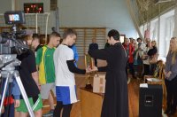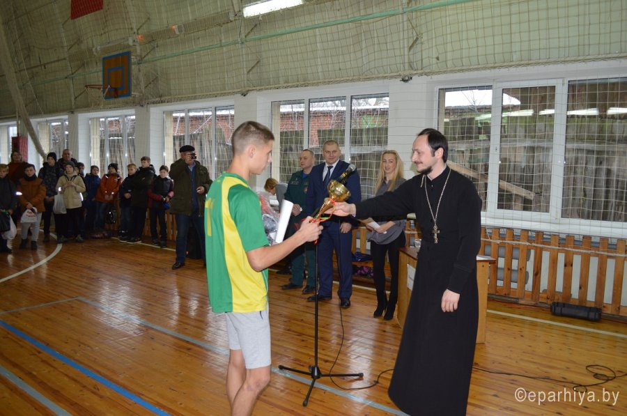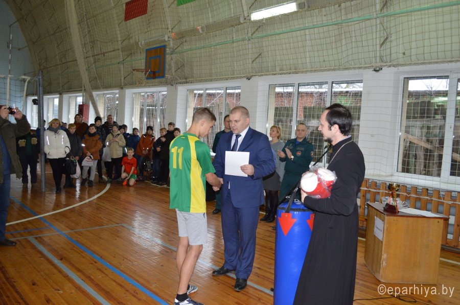 Две волейбольные площадки стадиона "Центральный" г. Речицы принимали соревнования по волейболу между командами учреждений образования района на призы православного молодежного братства в честь апостола Фомы 14 декабря 2017г. В этом году в турнире участвовали 12 команд из общеобразовательных школ г. Речицы и Речицкого района, команда Речицкого государственного аграрного колледжа и команда Речицкого государственного профессионального аграрно-технического лицея. Открыл состязания заместитель председателя Речицкого райисполкома Александр Анатольевич Горбач, который поздравил всех с началом, уже ставшего традиционным для Речицы, турнира и пожелал участникам спортивных побед. Более пяти часов не утихали на площадках нешуточные страсти. Ни одна из команд не желала уступать победу без борьбы. Но в любой борьбе все равно есть сильнейший. По результатам финальной игры первое место, с правом владеть переходящим кубком и боксерскими мешком с перчатками в качестве приза, заняла команда СШ № 6, второе и приз, теннисный набор - команда СШ № 10. Третье место и приз, набор для игры в дартс, выиграла команда школы № 5. Ну, а почетное четвертое место заняла команда аграрного колледжа. Иерей Григорий Якубович, вручая призы победителям, поблагодарил всех за прекрасный спортивный праздник и пожелал ребятам обязательно встретиться на этих площадках в следующем году, а за год поднабраться здоровья и крепости духа, так необходимого в любой борьбе. |
