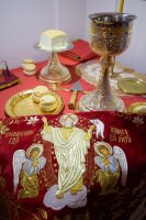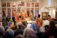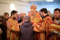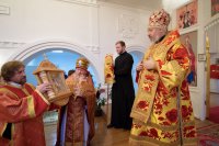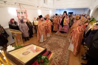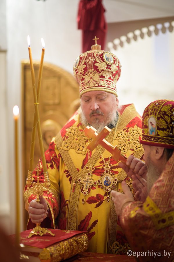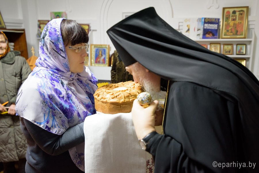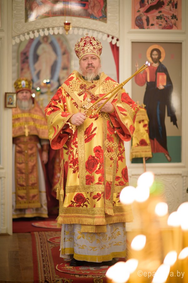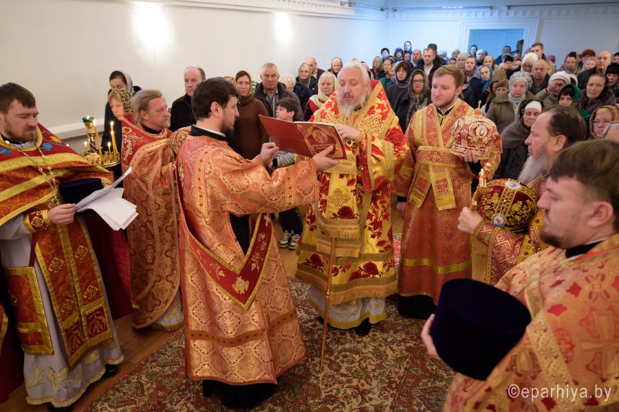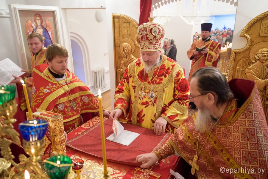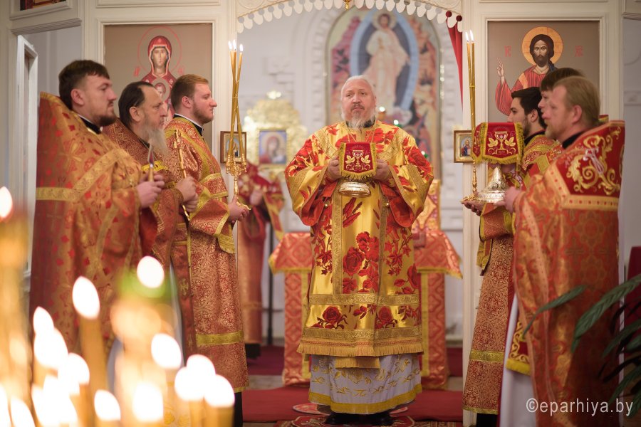Божественную литургию в день памяти св.вмц.Варвары Преосвященный Стефан совершил в одноименном храме аг.Боровики 17 декабря 2017г. Преосвященному сослужили: секретарь Гомельской епархии протоиерей Георгий Алампиев, благочинный Светлогорского округа протоиерей Александр Кисель, настоятель храма архимандрит Алексий (Желенок) и духовенство Гомельской епархии. По окончании богослужения Владыка совершил чин славления вмц.Варвары. Преосвященному Стефану был передан в дар Святой Образ. После чего епископ Гомельский и Жлобинский Стефан вручил присутствующим памятные иконки, поздравил причастников с принятием Святых Христовых Таин и обратился к молящимся со словами Архипастырского назидания. |