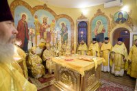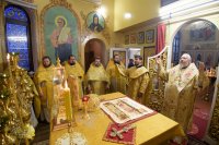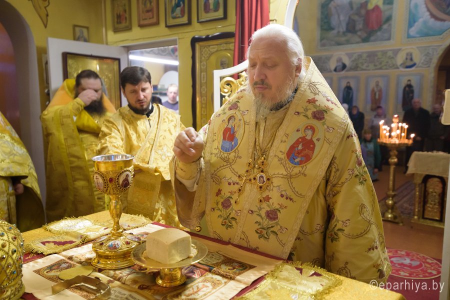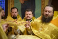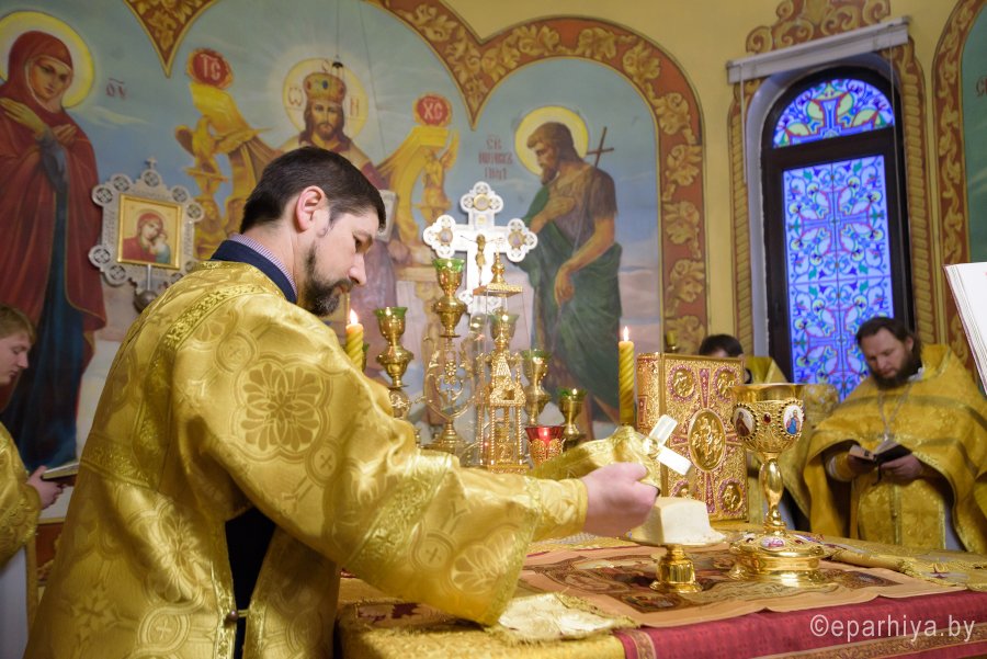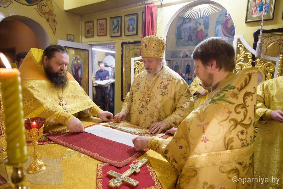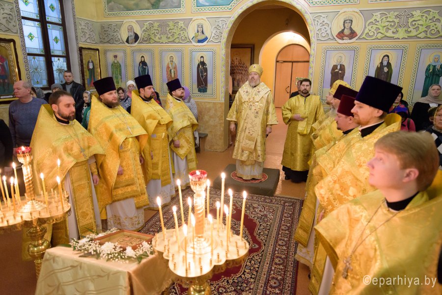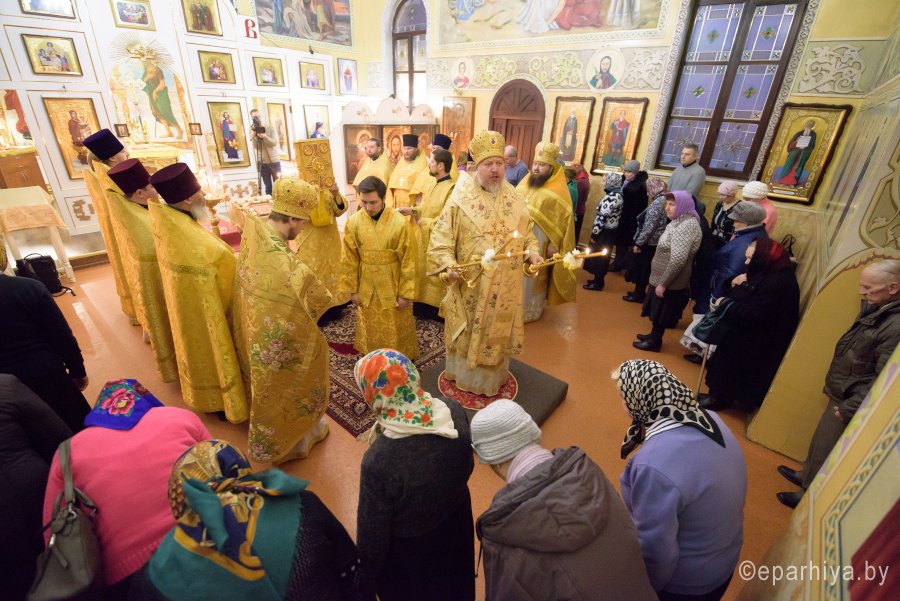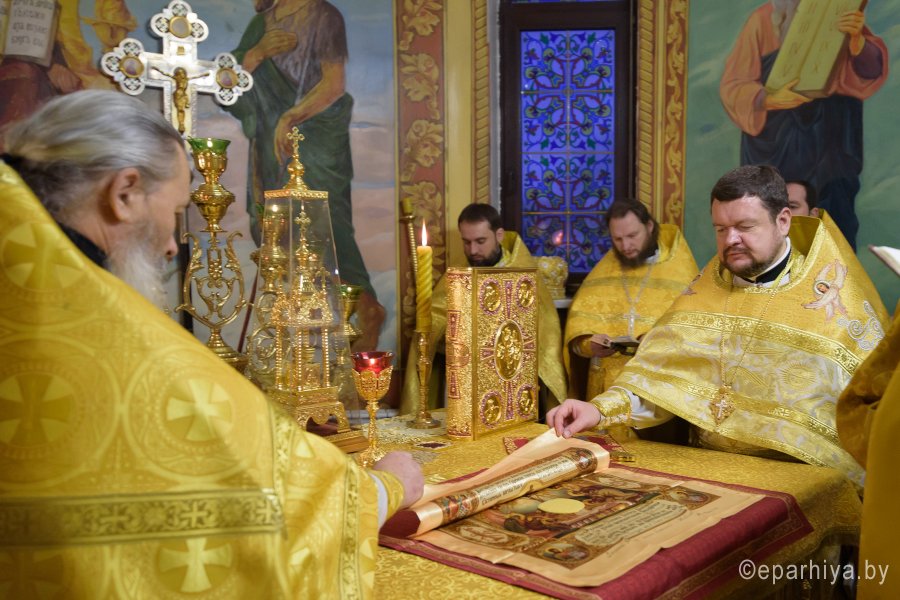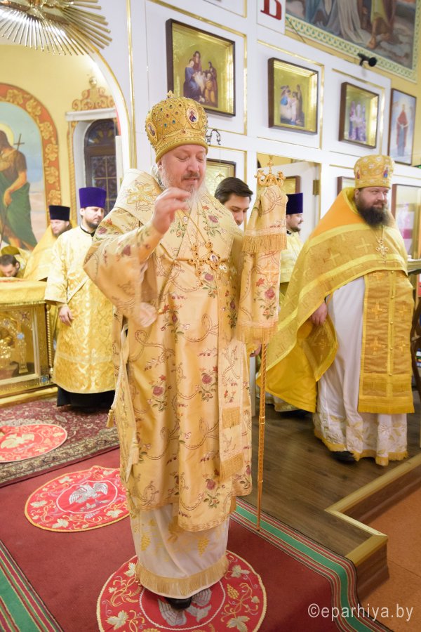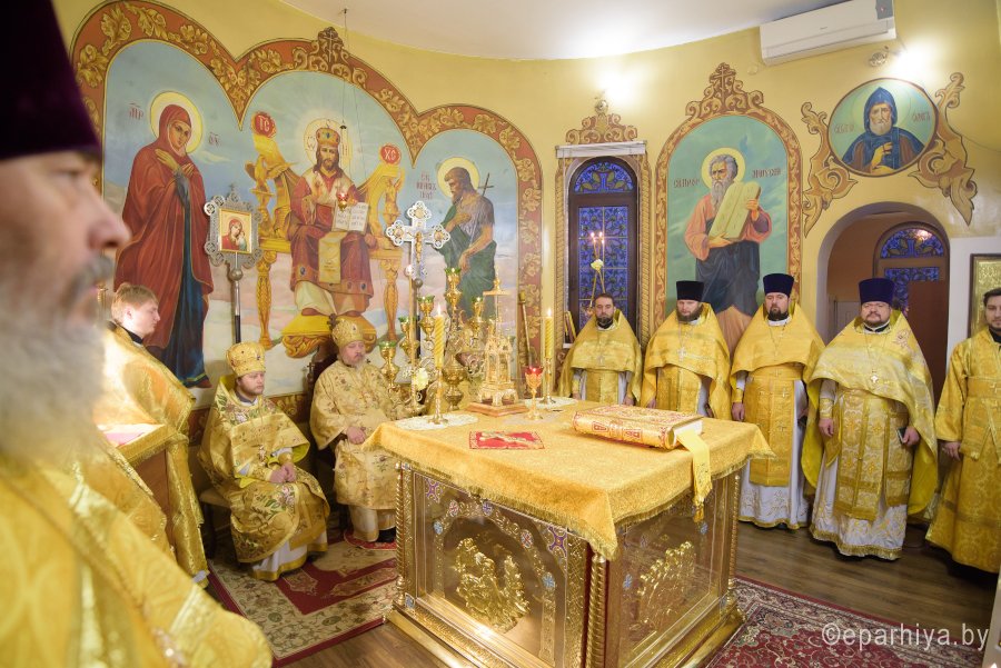 Божественную литургию в день памяти свт. Амвросия епископа Медиоланского 20 декабря 2017г. в Спасо-Преображенском храме г.Гомеля совершил Преосвященный Стефан, епископ Гомельский и Жлобинский. Преосвященному сослужили: секретарь Гомельской епархии протоиерей Георгий Алампиев, благочинный монастырей Гомельской епархии архимандрит Амвросий (Шевцов), благочинный Гомельского городского округа протоиерей Игорь Ольшанов, настоятель прихода протоиерей Олег Кострома и духовенство епархии. По окончании богослужения Владыка поздравил причастников с принятием Святых Христовых Таин и обратился к молящимся со словами Архипастырского назидания. В ходе визита в Спасо-Преображенский храм Преосвященный Стефан ознакомился с ходом строительных работ и подготовкой к празднику Рождества Христова. Икона с частицей мощей святого Амвросия Медиоланского является одной из наиболее чтимых святынь Преображенского храма. На гомельскую землю святыня была доставлена в 2011 году, после церемонии передачи частицы мощей, состоявшейся в итальянском городе Ориджио. Проходила она по благословению Высокопреосвященнейшего Аристарха, Архиепископа Гомельского и Жлобинского, а делегацию Гомельской епархии возглавлял руководитель епархиального информационного отдела, настоятель прихода храма Преображения Господня протоиерей Олег Кострома. 14 октября 2011 года икона с частицей мощей святителя Амвросия прибыла в Спасо-Преображенский храм города Гомеля, где доступна для поклонения верующих. С итальянской стороны церемонию передачи возглавил кардинал Анджело Скола. Частица мощей святого Амвросия, находящаяся на постоянном хранении в Спасо-Преображенском храме, является редкой для православного мира и первой для Беларуси святыней такого рода, и архиерейское служение перед ней стало важной вехой в прославлении святынь православного мира в Гомельской епархии. |