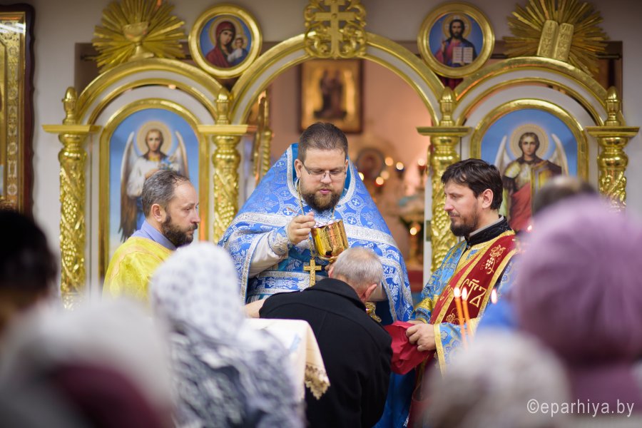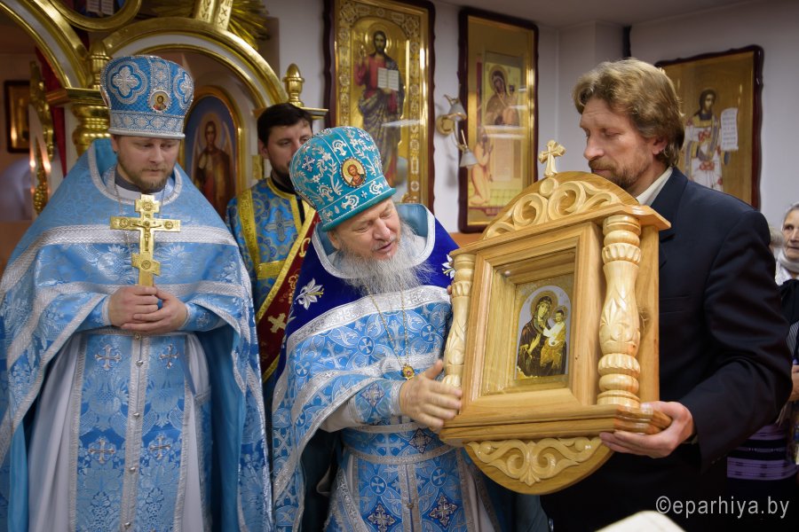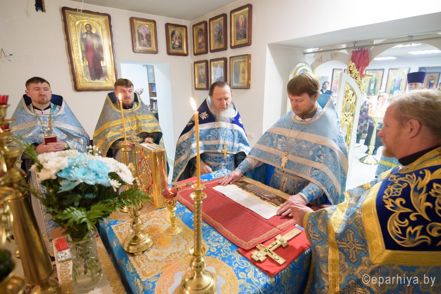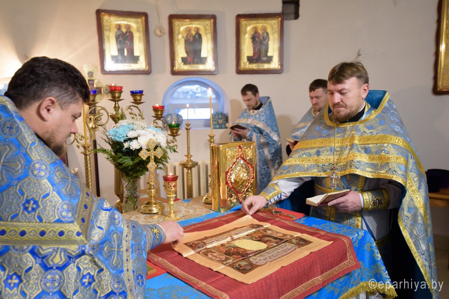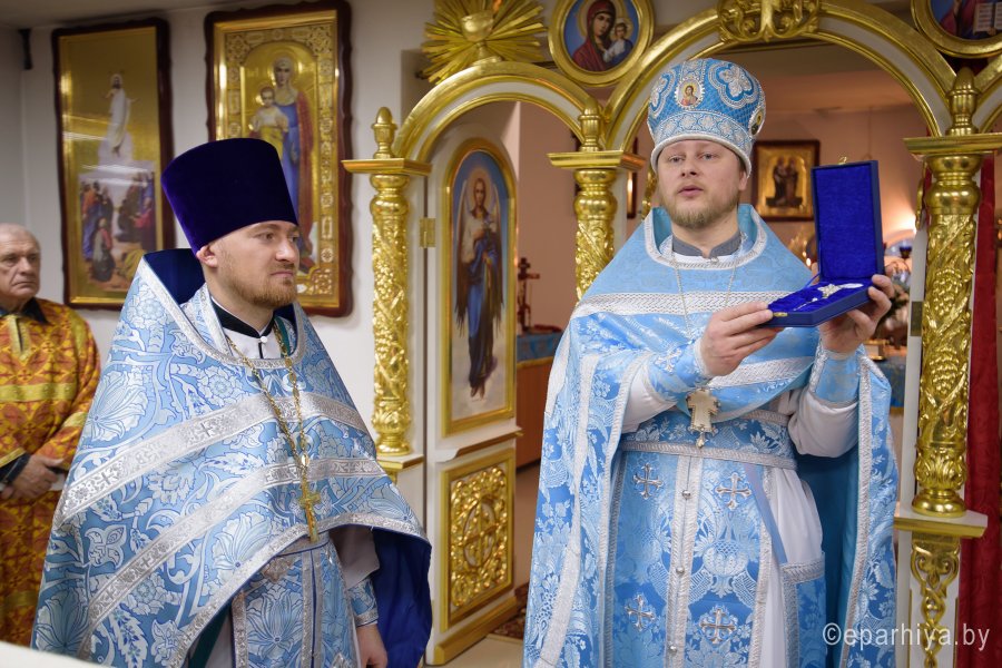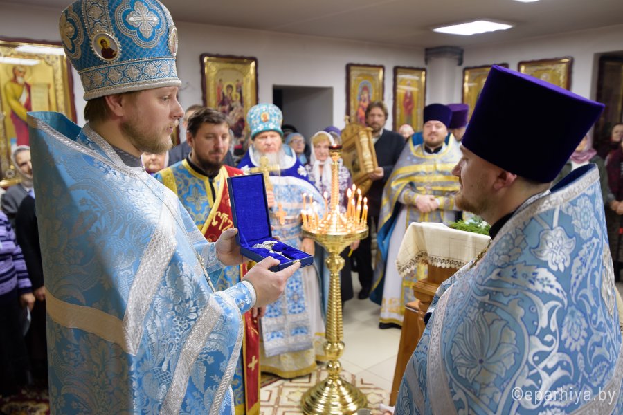 В праздник иконы Божией Матери "Нечаянная радость" в криптовом храме прихода святителя Кирилла Туровского г.Светлогорска, освященного в честь иконы Божией Матери "Нечаянная радость", 22 декабря 2017г. Божественную литургию возглавил секретарь Гомельской епархии протоиерей Георгий Алампиев. Его Высокопреподобию сослужили: благочинный Светлогорского благочинного округа протоиерей Александр Кисель и духовенство округа. По окончании богослужения протоиерей Георгий Алампиев поздравил настоятеля прихода храма святителя Кирилла Туровского в г.Светлогорске протоиерея Сергея Киселя с Днем рождения и от лица Преосвященного Стефана, епископа Гомельского и Жлобинского преподнес в дар наперсный крест. |