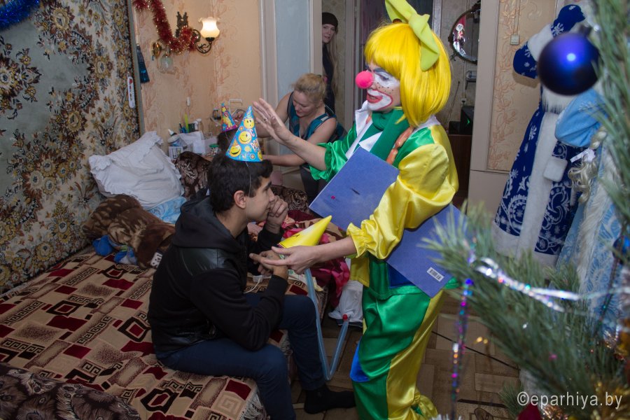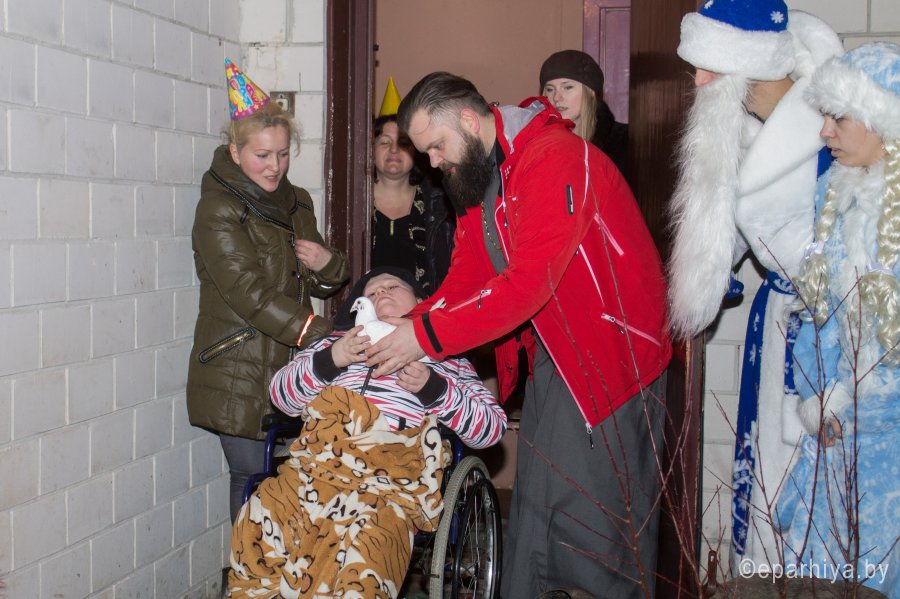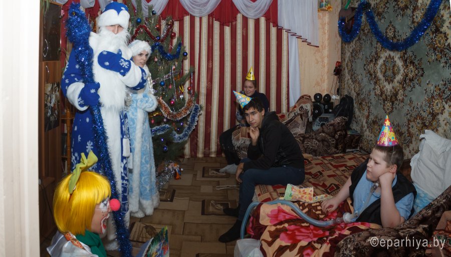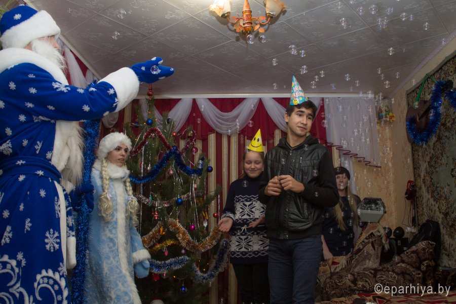 Дружная, веселая команда из шести человек, которые являются постоянными и активными участниками молодежной группы "ИХФИС" при кафедральном соборе Петра и Павла г. Гомеля 24 декабря 2017г., выехала в д. Красная Буда (Добрушский район, Гомельская область) с целью, поздравить Пузикова Даниила с Днем Рождения и наступающим Новым годом. Для Даниила и его друзей было представлено маленькое праздничное представление с конкурсами, загадками, танцами, песнями и подарками. Даниил впервые в жизни смог подержать в руках голубя, ощутить его тепло, послушать сердцебиение и конечно же выпустить его обратно на волю. Завершением праздничного представления стал фейерверк и шумные хлопушки. У Даниила поставлен диагноз Миопатия Дюшенна - это не излечимая болезнь. |