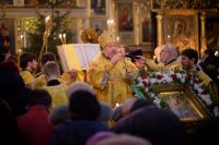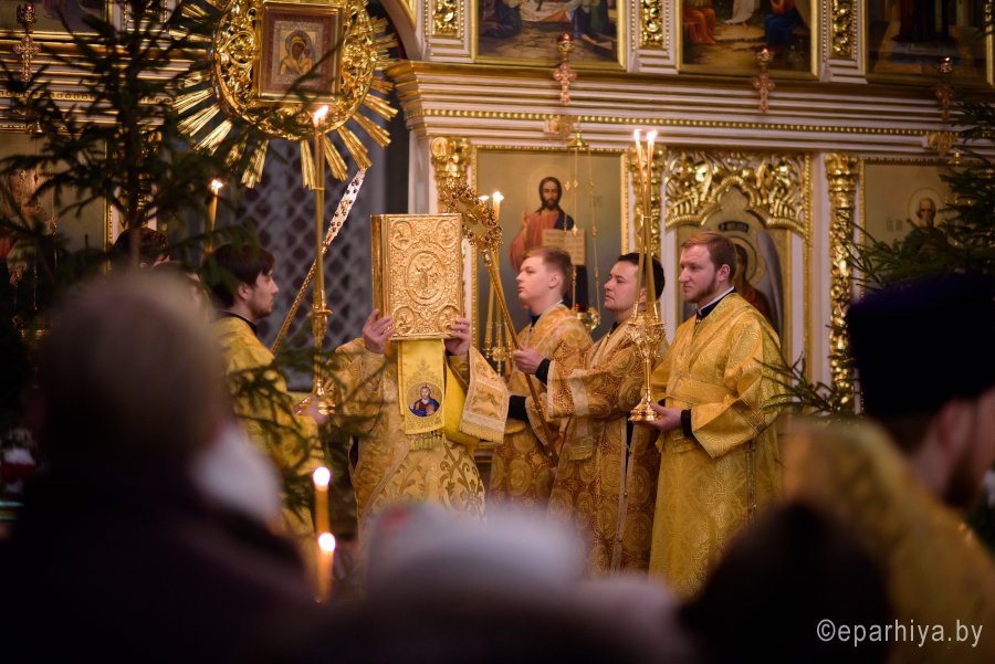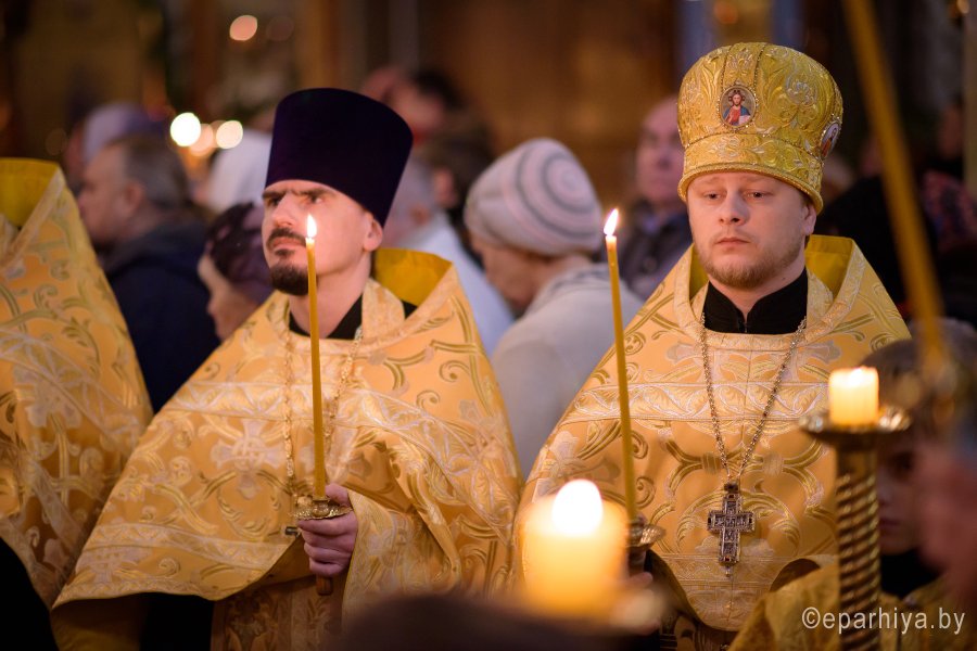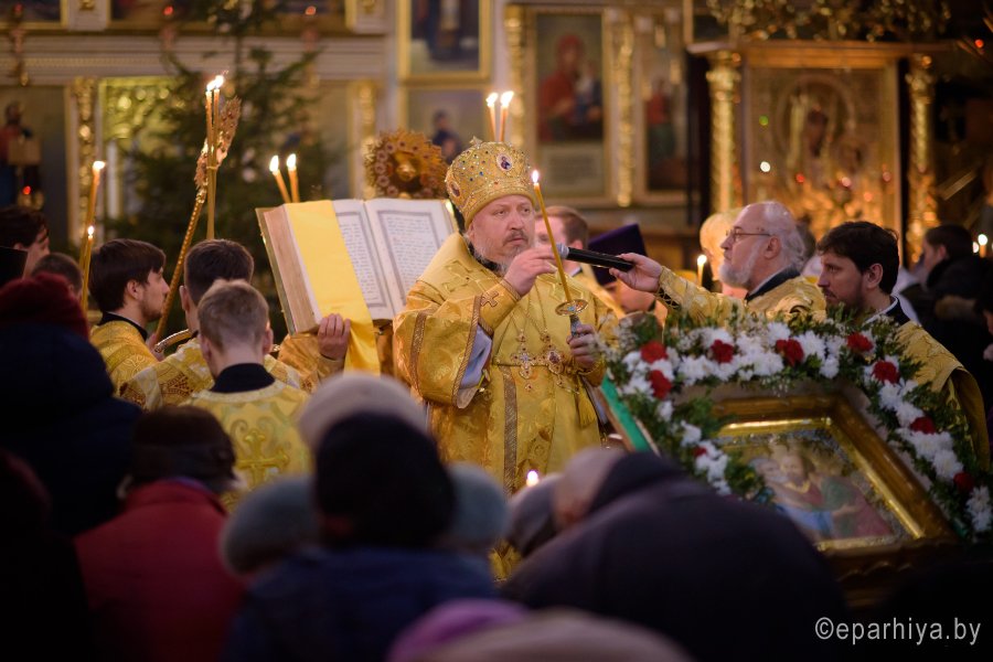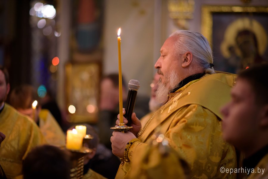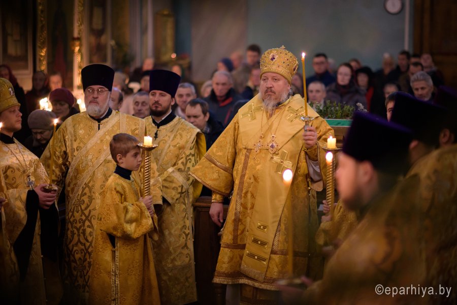 Всенощное бдение в канун Недели 30-й по Пятидесятнице, совершил Преосвященный Стефан в сослужении секретаря Гомельской епархии протоиерея Георгия Алампиева и духовенства собора в Свято-Петро-Павловском кафедральном соборе г.Гомеля 30 декабря 2017г. По окончании богослужения Владыка обратился к молящимся со словами Архипастырского назидания. |