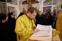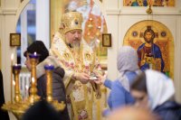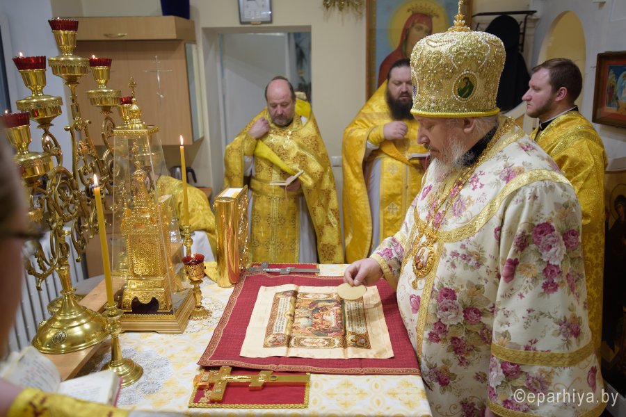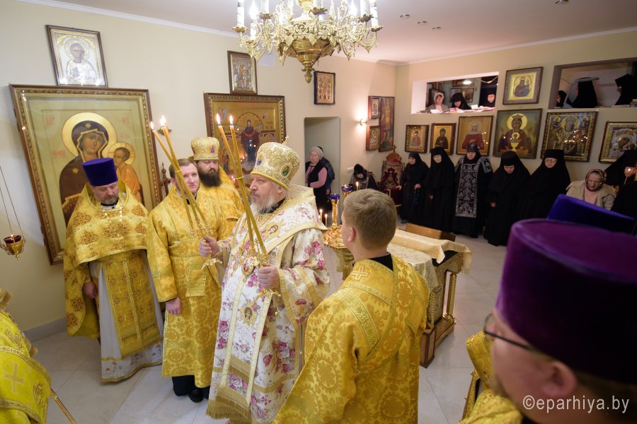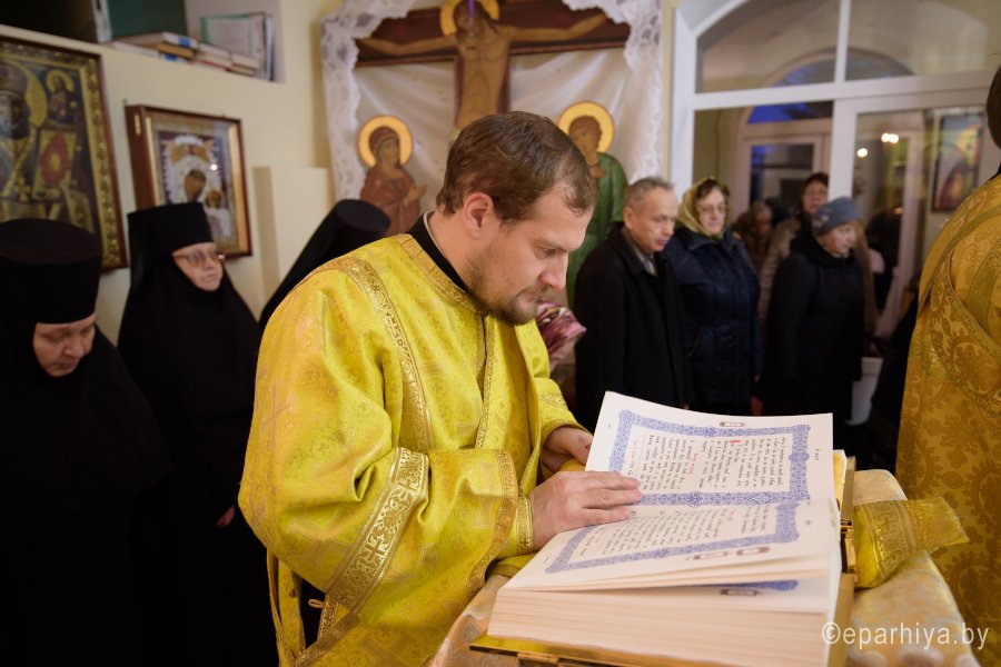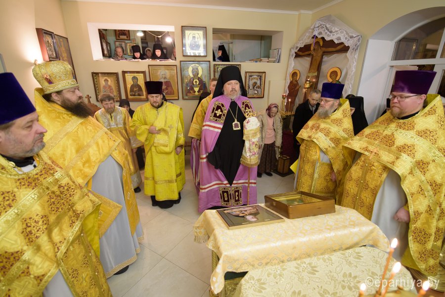 Божественную литургию в день памяти праведного Иоанна Кронштадтского 2 января 2018г. Преосвященный Стефан совершил в Свято-Тихвинском женском монастыре г.Гомеля. Преосвященному сослужили: благочинный монастырей Гомельской епархии архимандрит Амвросий Шевцов и духовенство епархии. По окончании богослужения Владыка поздравил причастников с принятием Святых Христовых Таин, обратился к молящимся со словами Архипастырского назидания и в память об этом дне раздал присутствующим иконки. |