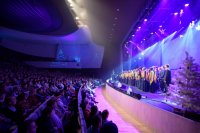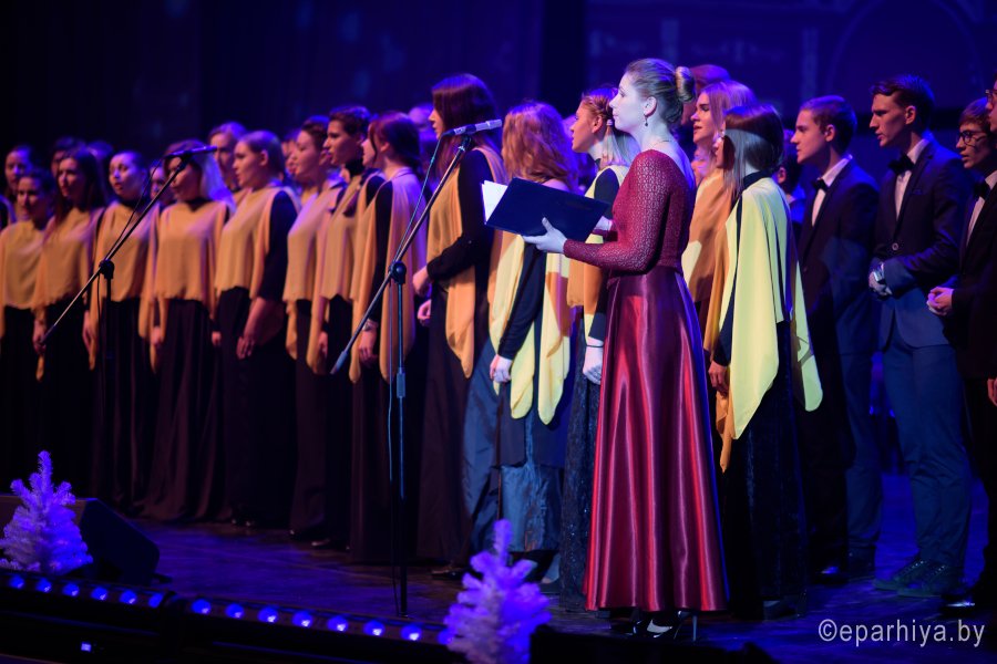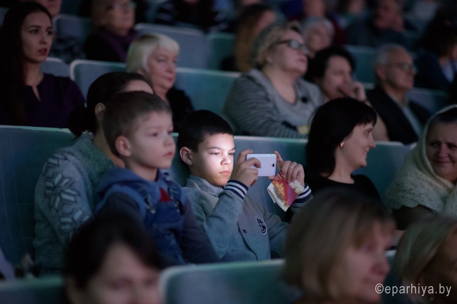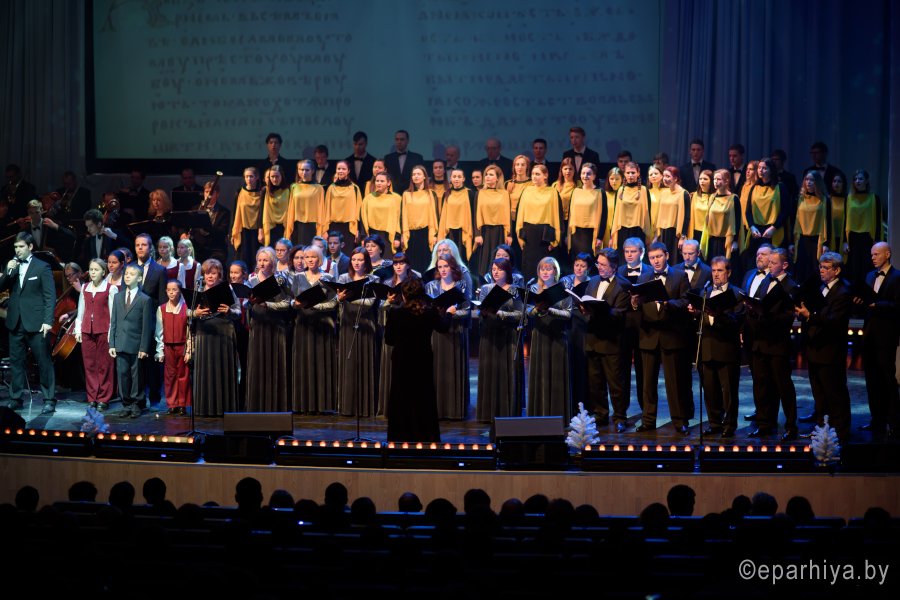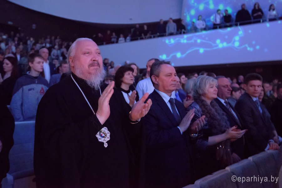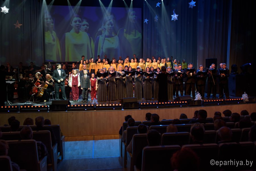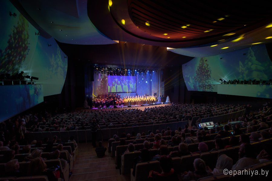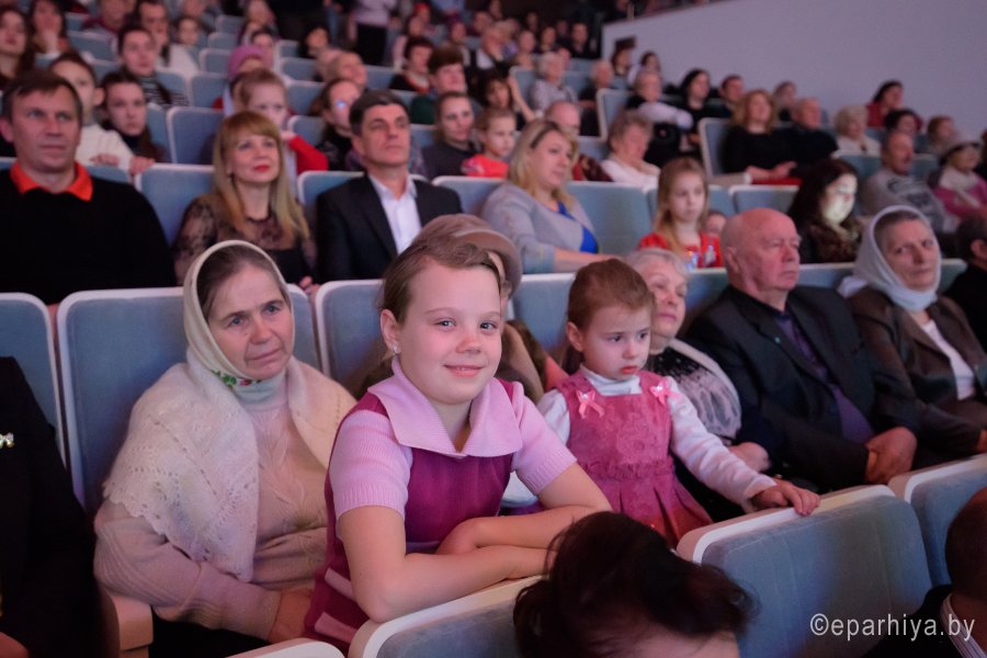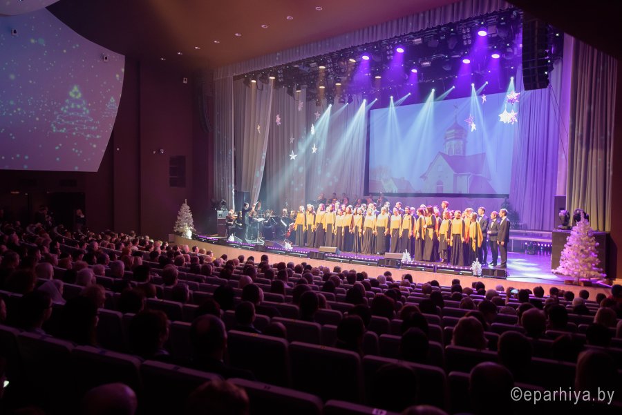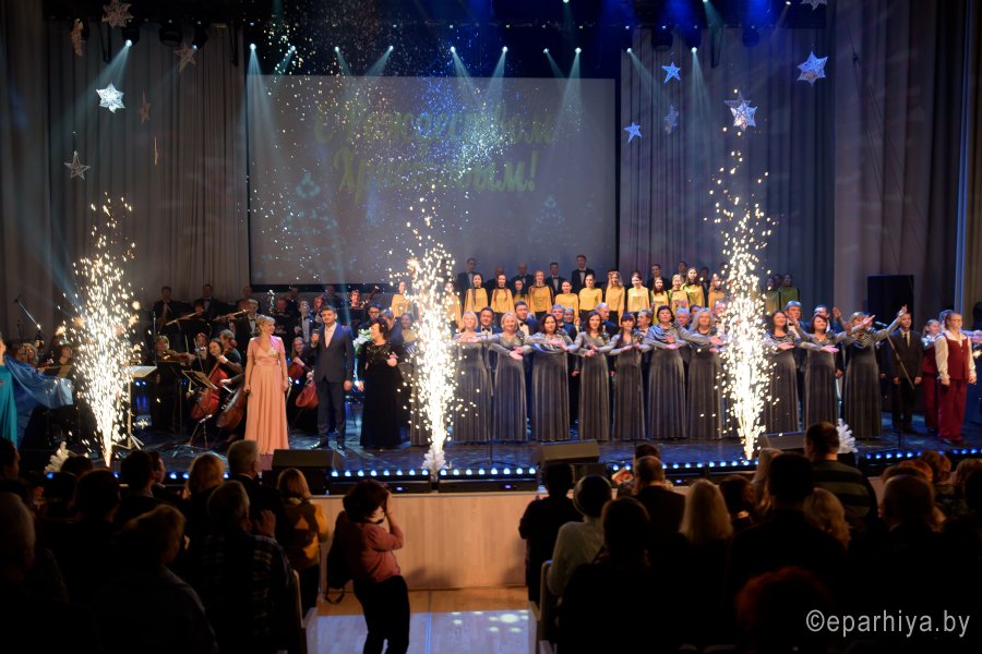 Традиционный Рождественский концерт в Гомельском общественно-культурном центре, который проводится Гомельским областным исполнительным комитетом и Гомельской епархией состоялся 7 января 2018г., в день празднования Светлого праздника Рождества Христова. Перед началом концерта к зрителям со словами поздравления с Рождеством Христовым обратился Преосвященный Стефан, епископ Гомельский и Жлобинский. В ходе рождественского концерта профессиональные и самодеятельные коллективы Гомельской области поздравили зрителей красочной концертной программой. Никого из присутствующих не оставило равнодушным выступление коллектива людей с ограниченными возможностями, которые исполнили песню на языке жестов. Концерт также посетили Председатель Гомельского городского исполнительного комитета Петр Алексеевич Кириченко и другие высокие гости. |