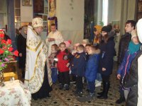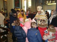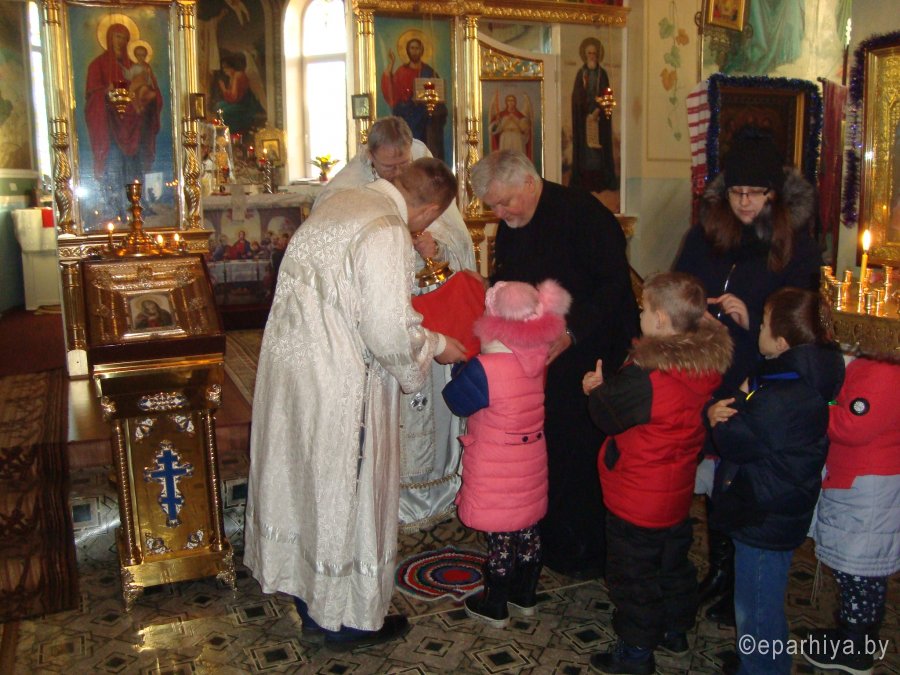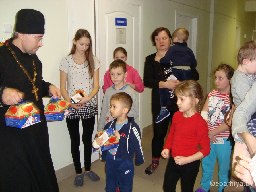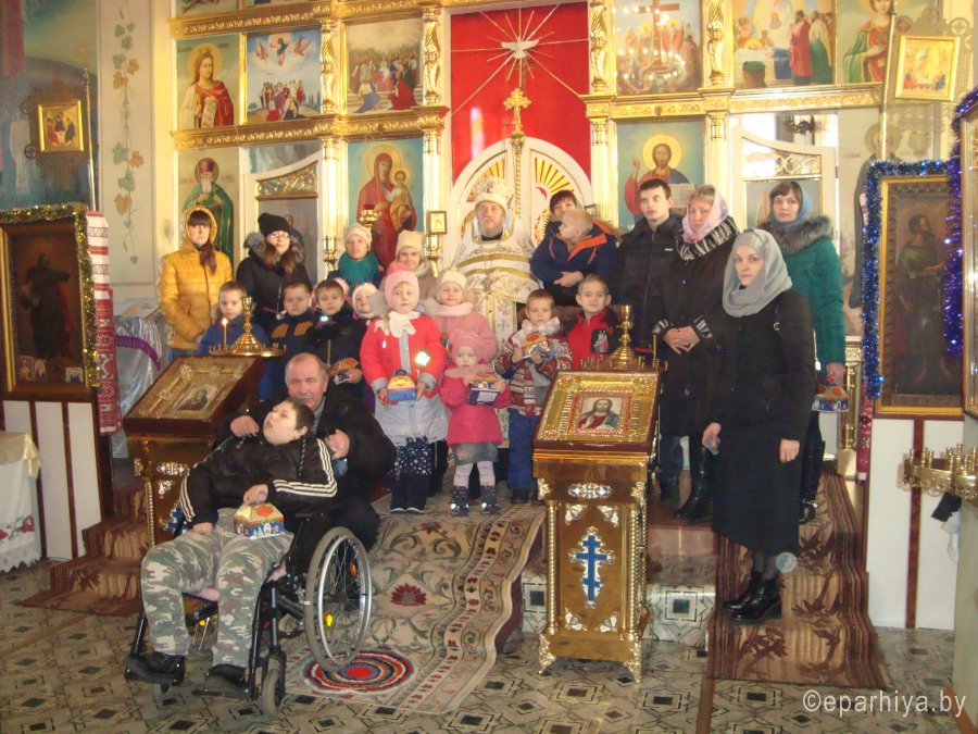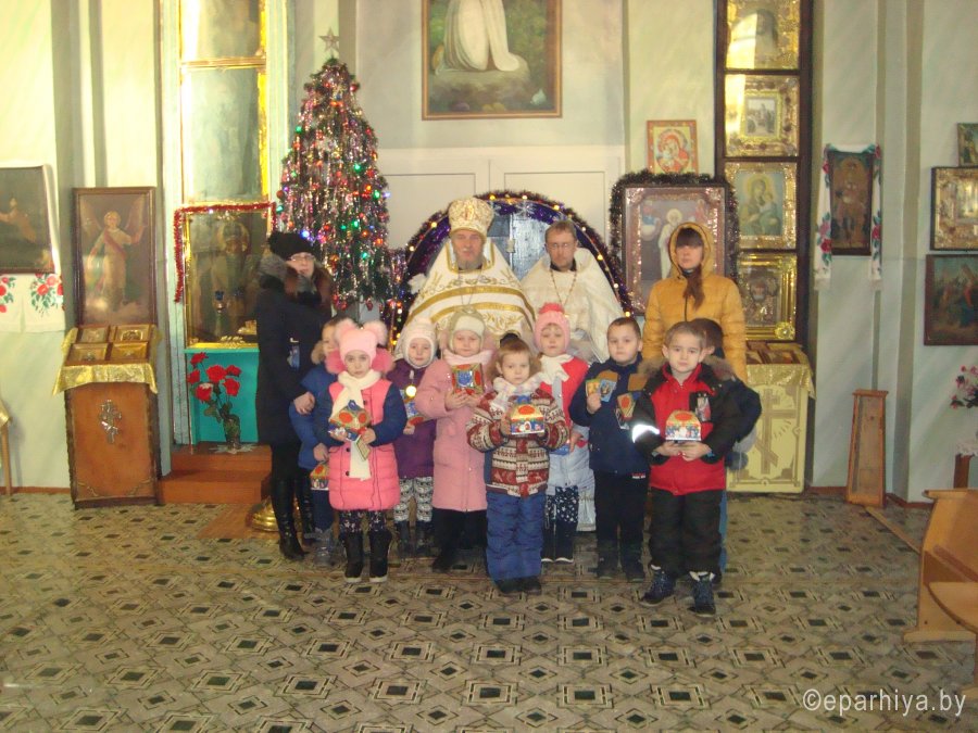 В светлый день Рождества Христова, 7 января 2018г., настоятель прихода храма Преображения Господня в г.Ветке протоиерей Михаил Борисёнок посетил детское отделение Ветковской ЦРБ. Священнослужитель поздравил находящихся на лечении детей и присутствовавших матерей с великим праздником Рождества Христова, вручил каждому ребёнку подарок со сладостями, Рождественскую иконку, календарик, а родителям - просветительский праздничный буклет. Также священник пожелал детям скорейшего выздоровления, радости, терпения и всего доброго на многая лета. 8 января, на второй святочный день Рождества Христова, храм Преображения Господня в г.Ветке посетили две группы детей: дети с ограниченными возможностями из Ветковского Центра коррекции и развития, а также воспитанники старшей группы из детского сада №3 г.Ветки. Детей встретил настоятель храма протоиерей Михаил Борисёнок. После того, как все дети причастились Тела и Крови Христовых, священник поздравил детей с великим праздником, вручил каждому ребёнку подарок со сладостями, иконку Рождества, календарик и просветительскую праздничную листовку для родителей. Историю Рождества Христова детям рассказала учитель приходской воскресной школы. 7 января 2018 года воспитанники воскресной школы храма Преображения Господня в г.Чечерске поздравили прихожан с Рождеством Христовым. Своим выступлением дети попытались разбудить в присутствующих любовь к ближнему и поделиться со всеми Рождественской радостью. Ученики читали стихи и пели рождественские колядки и песни. Настоятель храма протоиерей Георгий Шмидов поздравил учащихся с праздником и вручил каждому рождественские подарки. |