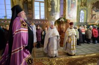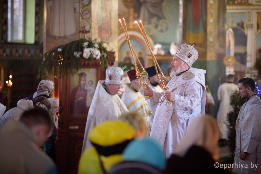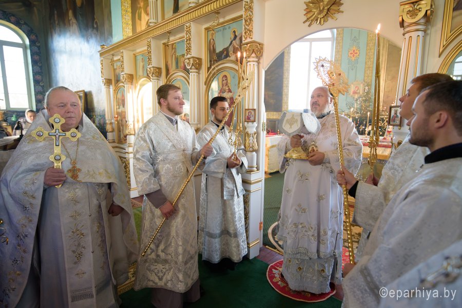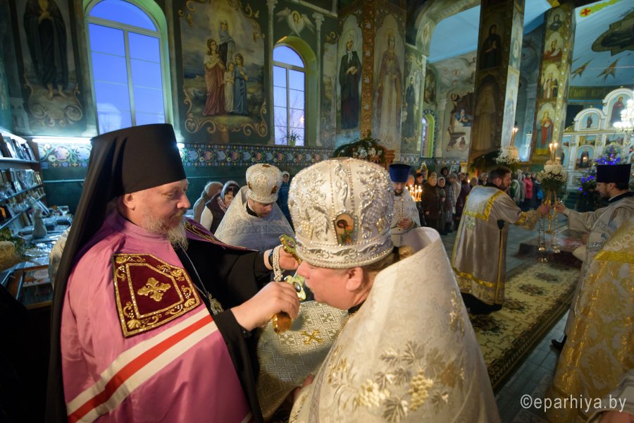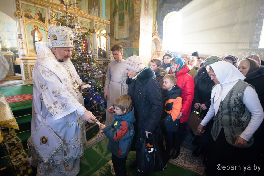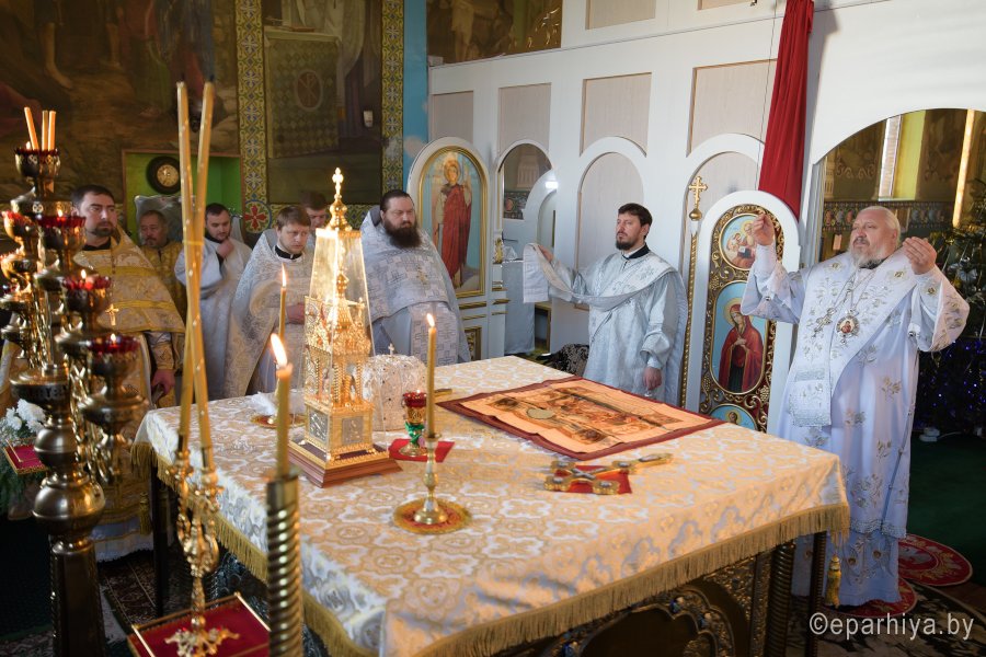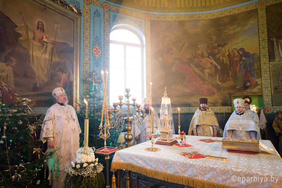 Божественную литургию в попразднство Рождества Христова, 8 января 2018г., Преосвященный Стефан совершил в храме Святой Живоначальной Троицы г.Жлобина. Преосвященному сослужили: секретарь Гомельской епархии протоиерей Георгий Алампиев, благочинный монастырей Гомельской епархии архимандрит Амвросий (Шевцов), благочинный Жлобинского округа протоиерей Василий Пилипенко и духовенство округа. По окончании богослужения Владыка поздравил причастников с принятием Святых Христовых Таин, обратился к молящимся со словами Архипастырского назидания и в память об этом дне раздал всем присутствующим иконки. |