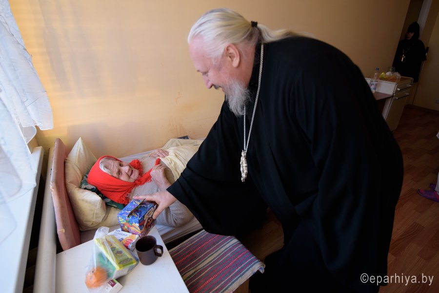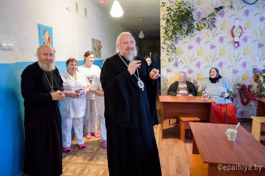 Поистине праздничное Рождественское настроение подарено насельникам Огородни—Гомельской больницы сестринского ухода д. Огородня. 8 января с Рождественским поздравлением их посетил епископ Гомельской и Жлобинский Стефан и сестры Свято-Иоанно-Кормянского женского монастыря совместно с архимандритом Варсонофием (Степанцовым). Владыка пообщался с пациентами, доставил в больницу предметы гигиены и сладкие подарки. Пациенты делились с Преосвященным своими впечатлениями и благодарили за внимание, которое регулярно оказывают сестры Кормянкской обители. |