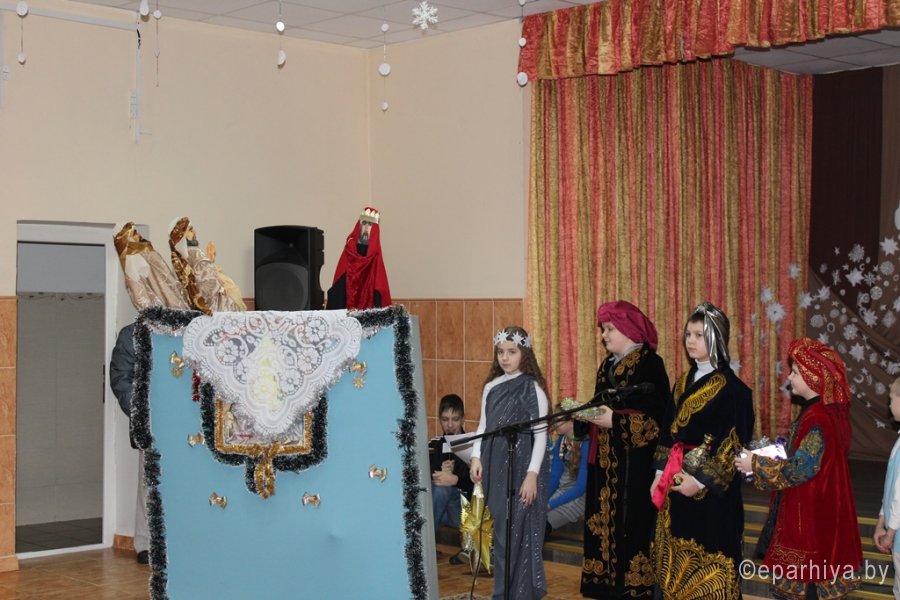 Вот и снова Рождество Христово! По традиции 7 января после праздничной Божественной литургии воспитанники воскресной школы прихода храма святого благоверного князя Александра Невского в г. Рогачёве поздравили прихожан со Светлым праздником Христова Рождества. А подарком стало театрализованное представление «Вслед за Рождественской звездой». Её чудесный свет привёл к Богомладенцу волхвов, вместе с которыми зрители повстречали царя Ирода и его звездочётов и выяснили, что никакие гороскопы не скажут правды. Истину можно познать только чистым и добрым сердцем, и оно станет лучшим подарком Младенцу Христу. Весть о Рождестве Христовом в отделение дневного пребывания инвалидов ТЦСОН принесли 8 января 2017 г. протоиерей Александр Атрощенко и прихожанки храма святого благоверного князя Александра Невского г.Рогачева. Священнослужитель поздравил всех с этим светлым и радостным праздником, рассказал его историю и традиции. Маленький концерт подарила «особенным людям» Старченко Евдокия Фёдоровна. Она прочитала им стихи собственного сочинения и исполнила рождественские песни. 25 подопечных этого отделения всегда с нетерпением ждут встречи, радуются общению. Даже маленькие знаки внимания они принимают с большой благодарностью, а рождественским подаркам, которые приготовили для них прихожане, радовались, как дети. Радость о Рождестве Христовом приходит в учреждения образования Рогачёвского благочиния. 8 января 2017 г. в средней школе №4 г. Рогачёва имени В.С.Величко, которая является инновационной площадкой по духовно-нравственному воспитанию, открылся Рождественский фестиваль "Свет Вифлеемской звезды". В день открытия фестиваля протоиерей Алексей Смотрицкий встретился с педагогами этой школы, поздравил их с праздником Рождества Христова и объяснил значение этого события для каждого человека. Начиная с Ветхого Завета, Библия повествует нам о том, как человек, в грехопадении потеряв связь с Богом, пытается заполнить образовавшуюся в душе пустоту. Всё Священное Писание многочисленными образами убеждает нас: полноту бытия человек может обрести только в Боге. Более того, Господь Сам пришёл на Землю, принял человеческую природу, чтобы восстановить в Себе её утраченную целостность. Он предлагает нам соединение с Собою в Таинстве Евхаристии. Не заставляет, а зовёт и предлагает стать причастным Жизни. А выбор остаётся за нами... Святки - время добрых дел! И одно такое в очередной раз сделала активная и неравнодушная молодежь из г.п.Корма вместе с клириком храма святителя Николая Чудотворца иереем Виталием Лехновичем. Сотрудник центра культуры и досуга Денис Рыбенков, педагог из центра творчества детей и молодежи Ольга Филимонова и специалист районного комитета БРСМ Алеся Гордиенко с радостью откликнулись на призыв священнослужителя поздравить с Новым годом и Рождеством, подарить немного радости и вручить подарки пожилым людям, находящимся в отделении сестринского ухода при Кормянской центральной районной больнице. Вечером 12 января, они посетили отделение, где помимо сладостей, напитков, фруктов, газет и журналов раздали пациентам еще и воздушные шарики - символ их добрых сердец, чем очень взволновали и обрадовали одиноких больных людей. Также медработникам были переданы для ухода за подопечными гигиенические средства, прио
