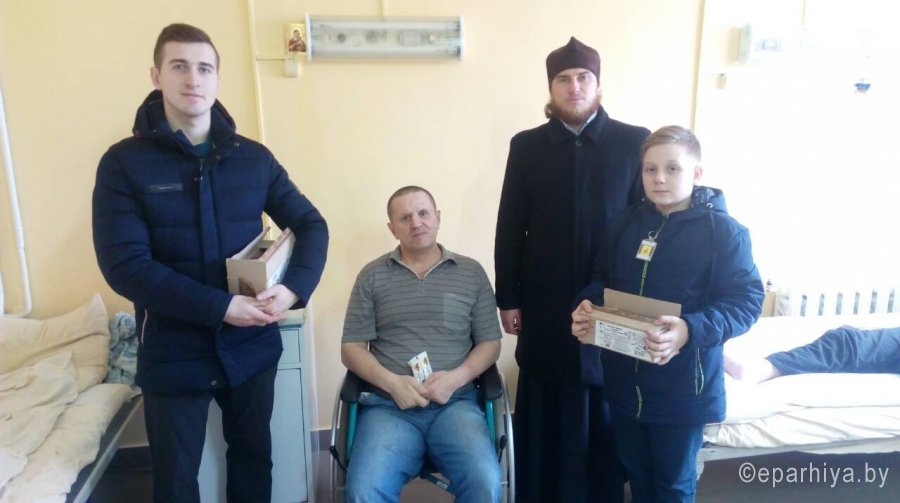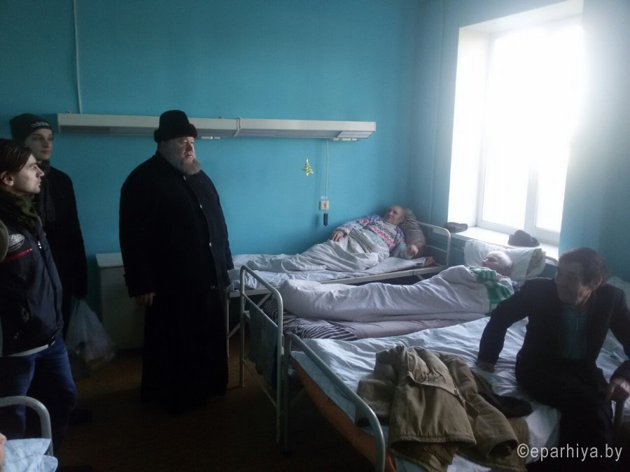 Праздничный концерт, организованный учащимися воскресной школы и молодежной группой прихода храма святителя Николая Чудотворца г. Буда-Кошелево состоялся в великий праздник Рождества Христова в центральном районном доме культуры г.Буда-Кошелево. Зрители перенеслись в те времена, когда родился наш Спаситель – Иисус Христос, увидели историю, предшествующую появлению Его на свет. Благодарная публика приняла выступление юных артистов на «ура». С большим интересом и удовольствием они смотрели театрализованные рождественские сценки, слушали чарующие звуки гитары и вокальные номера. В завершение мероприятия настоятель Свято-Никольского храма г.Буда-Кошелево протоиерей Сергий Пешко поздравил присутствующих с Рождеством Христовым, вручил участникам концерта сладкие подарки и пожелал ребятам оставаться в жизни такими же светлыми, радостными и добрыми, какими они сегодня предстали зрителям. В дни Рождественских праздников духовенство прихода храма святителя Николая Чудотворца в г.Буда-Кошелево, во главе с благочинным Буда-Кошелевского округа протоиереем Сергием Пешко, посетили пациентов больницы сестринского ухода в а.г.Рогинь. Поздравив пожилых людей с праздником, священнослужители вручили средства личной гигиены. Во время визита благочинный пообщался с каждым и ответил на интересующие вопросы. "В дни праздника Рождества Христова каждый человек должен, подобно волхвам и пастухам, принести дар младенцу Христу. Как же принести Господу Богу подарок, если мы Его не видим? Делая добро ближним, тем кто в нас нуждается, мы делаем это самому Иисусу Христу" - отметил протоиерей Сергий Пешко. Также в эти праздничные дни настоятель храма Рождества Пресвятой Богородицы в г.п.Уваровичи и молодежь прихода посетили психоневрологический дом-интернат для престарелых и инвалидов в своем посёлке. Сердечно поздравили пациентов и обслуживающий персонал учреждения с праздником. С пациентами и персоналом священник провел беседу, в ходе которой рассказал об истории праздника Рождества Христова, о чудесах и рождественской радости. Вручили всем памятные подарки и пожелали помощи Божией, безропотного терпения и скорейшего выздоровления. |