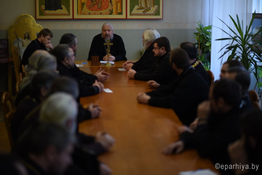 10 января 2018г. в здании Гомельского епархиального управления, под председательством епископа Гомельского и Жлобинского Стефана, состоялось собрание настоятелей приходов Гомельского городского округа. В ходе заседания обсуждались текущие организационные и кадровые вопросы. |