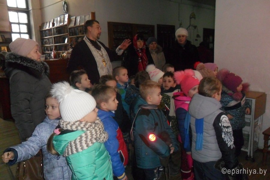 10 и 11 января 2018г., храм св. блгв. кн. Александра Невского г. Гомеля посетили воспитанники ГУО "Ясли-сад № 127 г. Гомеля". Экскурсии по храму и его окрестностям провели протоиерей Николай Мельников и иерей Андрей Погребной. Для большинства детей такая экскурсия стала первым серьезным знакомством с Церковью. Ребята узнали исторю храма, познакомились с иконами, узнали правила поведения во время богослужений. По окончании экскурсии священники еще раз поздравили всех с праздником Рождества Христова и угостили гостей сладостями. |