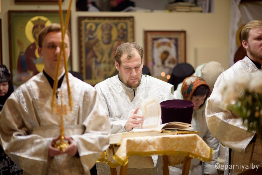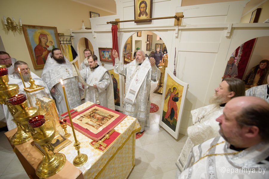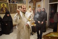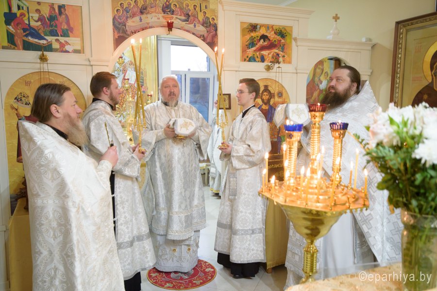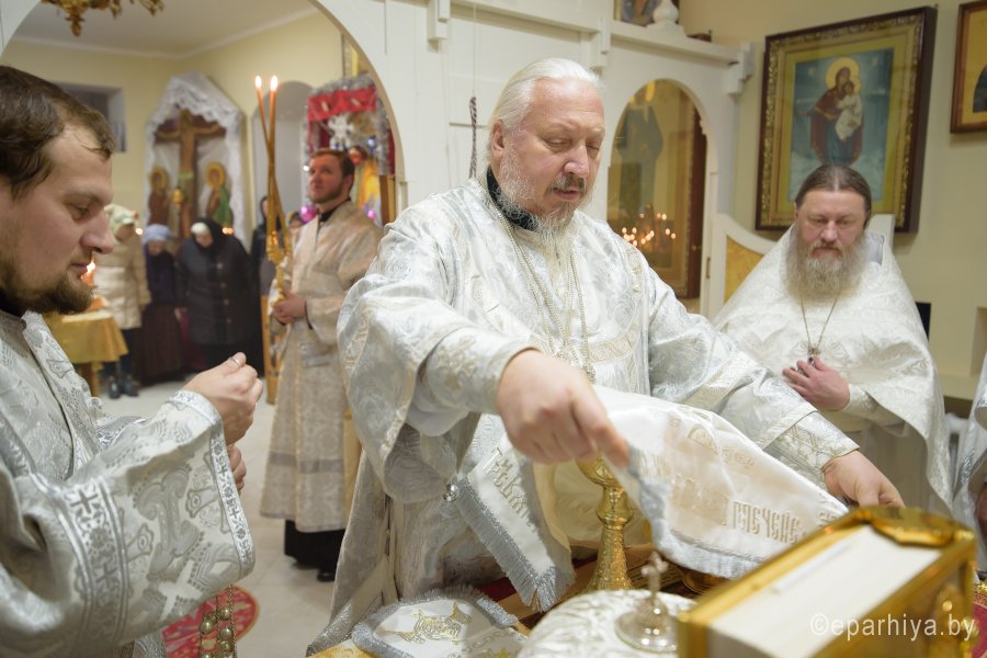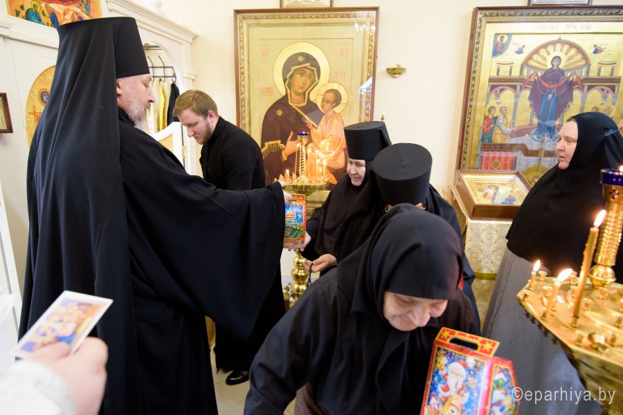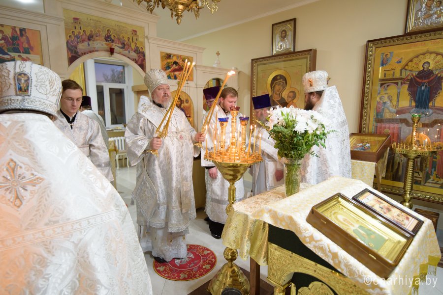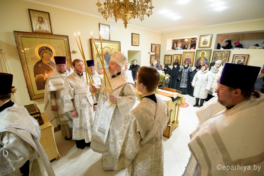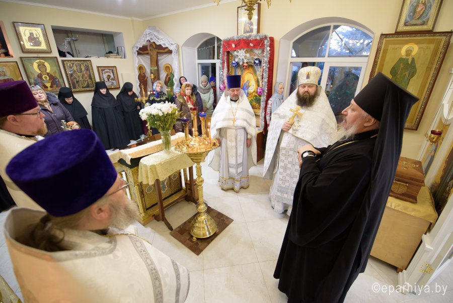 Божественную литургию в день Отдания праздника Рождества Христова 12 января 2018г. Преосвященный Стефан епископ Гомельский и Жлобинский совершил в Свято-Тихвинском женском монастыре в г.Гомеле. Владыке сослужили: благочинный монастырей Гомельской епархии архимандрит Амвросий (Шевцов) и духовенство монастыря. За богослужением молились игуменья Вера (Афонькина) с сестрами. По окончании богослужения Владыка поздравил причастников с принятием Святых Христовых Таин и обратился к молящимся со словами Архипастырского назидания. |