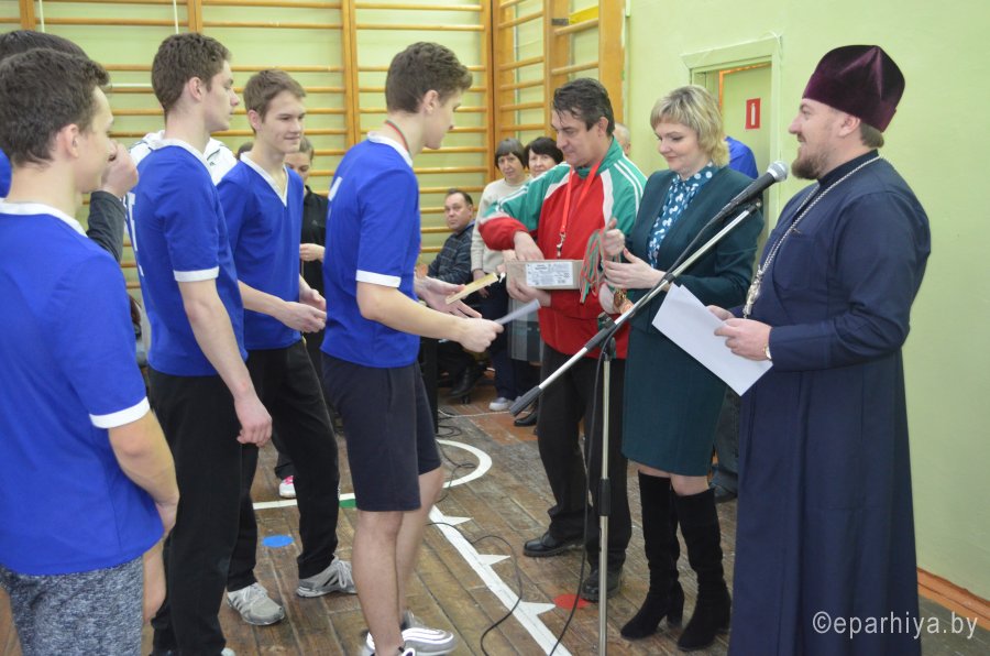 В Светлогорском благочинном округе завершился региональный этап Рождественского турнира по волейболу на кубок Молодежного отдела Гомельской епархии. В турнире приняли участие команды учреждений общего среднего образования Светлогорского района. Финальная игра прошла 13 января в спортзале ГУО «Средняя школа № 10 г. Светлогорска», где состязались 4 команды, вышедшие в финал отборочного турнира. Все спортсмены продемонстрировали настоящую командную игру. Открыла турнир заместитель начальника отдела образования, спорта и туризма Светлогорского райисполкома Шатило Наталия Ефимовна. "Бесспорно, каждая из команд сегодня постарается продемонстрировать свое мастерство и успехи, желание победить. Нет сомнений, игроки смогут порадовать поклонников волейбола и любителей спорта своим мастерством, а зрители получат заряд бодрости и хорошего настроения! Желаю всем участникам соревнований силы духа, воли к победе и новых спортивных достижений! Пусть победит сильнейший!" - сказала Наталия Ефимовна. По результатам финальной игры третье место в турнире заняла команда ГУО «Средняя школа № 1 г. Светлогорска». Второе место завоевала команда ГУО «Средняя школа № 9 г. Светлогорска». Первое место и титул победителя в отборочном турнире достались, как и в прошлом году, ребятам из ГУО «Гимназия г. Светлогорска». Команда победителей будет представлять Светлогорский район на областном турнире по волейболу на кубок Молодежного отдела Гомельской епархии. Победителей и участников отборочного турнира поздравил благочинный Светлогорского округа, настоятель храма Преображения Господня в г. Светлогорске протоиерей Александр Кисель. "Данный турнир по доброй традиции символично проходит в Святочные дни Светлого праздника Рождества Христова уже третий год подряд. Рождественские Святки – это время радости, общения, веселья, в том числе и проведения молодежных спортивных соревнований в духе доброго соперничества. Поздравляю вас, ребята, с хорошим выступлением, желаю дальнейшего физического и духовного роста" — поздравил участников священнослужитель. Протоиерей Александр Кисель вручил команде-победительнице кубок благочиния и футбольный мяч, а всем призерам соревнований - дипломы, медали и шоколадки. |