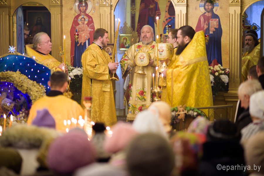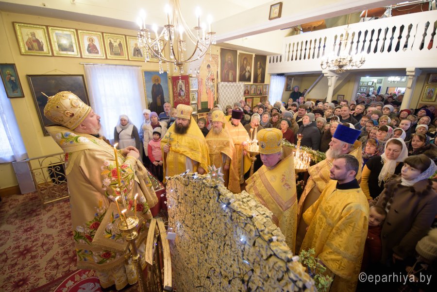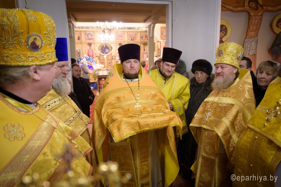 14 января 2018 года, в Неделю 32-ю по Пятидесятнице, перед Богоявлением, праздник Обрезания Господня и день памяти святителя Василия Великого, архиепископа Кесарии Каппадокийской, епископ Гомельской и Жлобинский Стефан, совершил Божественную литургию в храме святителя Василия Великого, г. Жлобина. Его Преосвященству сослужили: благочинный монастырей Гомельской епархии архимандрит Амвросий (Шевцов), благочинный Жлобинского округа протоиерей Василий Пилипенко, настоятель храма иерей Вячеслав Рябица и духовенство епархии. По заамвонной молитве Владыка и сослужащие священнослужители совершили славление празднику. Преосвященный поздравил причастников с принятием Святых Христовых Таин и преподал всем архипастырское благословение. |