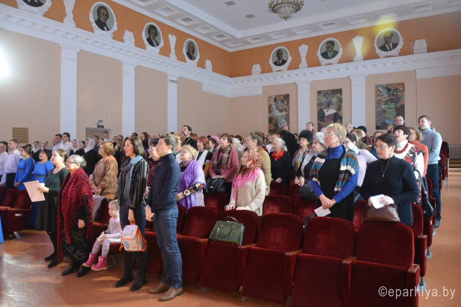 Давно вы окунались с головой в прекрасные песнопения, забывали о суетности мира и испытывали блаженное умиротворение, которое дарят светлая возвышенная музыка и пение церковного хора? Особенно хочется испытать эти чувства в любимый всеми христианами праздник Рождества Христова. Именно в такую праздничную атмосферу помог окунуться зрителям первый в Гомельской епархии Рождественский фестиваль духовной музыки «Gaudete», который состоялся в большом концертном зале колледжа искусств им. Н. Ф. Соколовского 14 января. Название фестиваля выбрано не случайно, "Gaudete" переводится с латинского как "радуйтесь", к чему нас призывает Евангелие, ведь родился Христос. Фестиваль, проведенный Гомельской епархией и Свято-Петро-Павловским кафедральным собором Гомеля по благословению епископа Гомельского и Жлобинского Стефана, приветственным словом открыл и передал благословение Владыки присутствующим наместник Свято-Никольского монастыря архимандрит Амвросий (Шевцов). В конкурсной программе приняли участие хоры следующих приходов: Архиерейский хор Свято-Петро-Павловского кафедрального собора в г.Гомеле, храма прп. Серафима Саровского в г.Гомеле, храма Святой Живоначальной Троицы в г.Жлобине, храма Покрова Пресвятой Богородицы в г.Речица, храма Рождества Пресвятой Богородицы в а.г.Урицкое, Детско-юношеский хор «Радость» Свято- Покровского храма в г.Иваново (Пинская епархия). Фестиваль проходил на конкурсной основе и выступления участников оценивало жюри, председателем которого был архимандрит Савва (Мажуко). Также в состав жюри входили заслуженный деятель культуры РБ - Елена Константиновна Соколова, руководитель народного самодеятельного коллектива «Академический хор» Гомельского государственного колледжа искусств им. Н. Ф. Соколовского - Варфоломеева Маргарита Валерьевна. Диплом лауреата I степени в номинации "Малый смешанный состав" получил хор из г.Речица под управлением Ефименко Светланы Владимировны. В номинации "Большой смешанный состав" звание лауреата I степени жюри присудило детско-юношескому хор «Радость» из г. Иваново (Пинская епархия) под управлением Фисенко Ксении Георгиевны. Помимо победителей, все участники также были отмечены дипломами фестиваля и памятными подарками. Актуальность и необходимость проведения подобных мероприятий были особо отмечены зрителями. Также нельзя было не отметить высокий уровень организации этого прекрасного мероприятия. В качестве заключительного аккорда прозвучали рождественские песнопения в исполнении сводного хора всех участников фестиваля. |